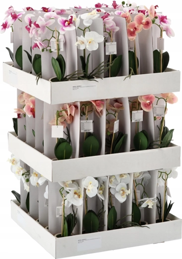 Fiecare piesă este așezată într-un ghiveci decorativ și este disponibilă într-un mix de 3 culori – alb, roz și roz deschis. Florile, frunzele și tulpinile sunt realizate cu atenție la detalii pentru un aspect cât mai veridic.