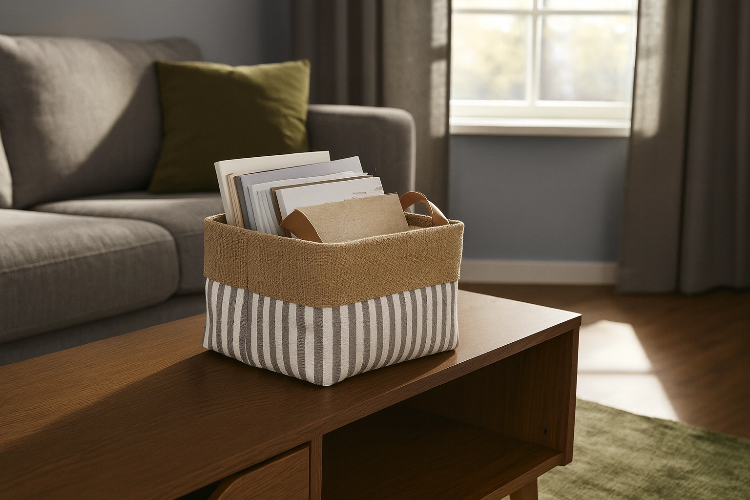 Organizator textil practic, cu dimensiunile 20 × 30 × 18 cm, menține locuința ordonată și stilată. Datorită dimensiunilor compacte, încape ușor în dulapuri, pe rafturi și în sertare, iar construcția solidă cu margini întărite asigură stabilitate. Designul cu dungi atemporal completează atât interioarele clasice, cât și pe cele moderne.