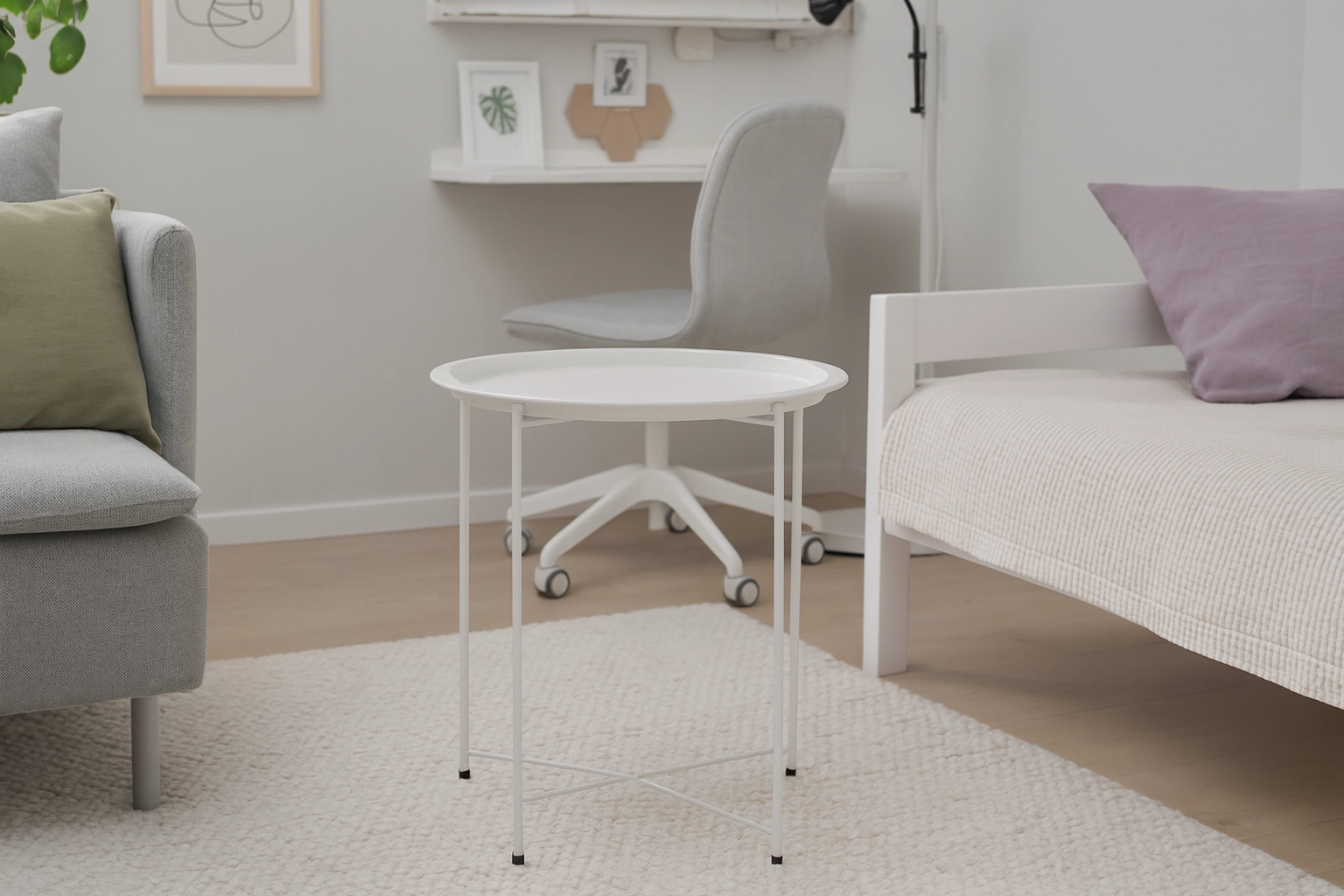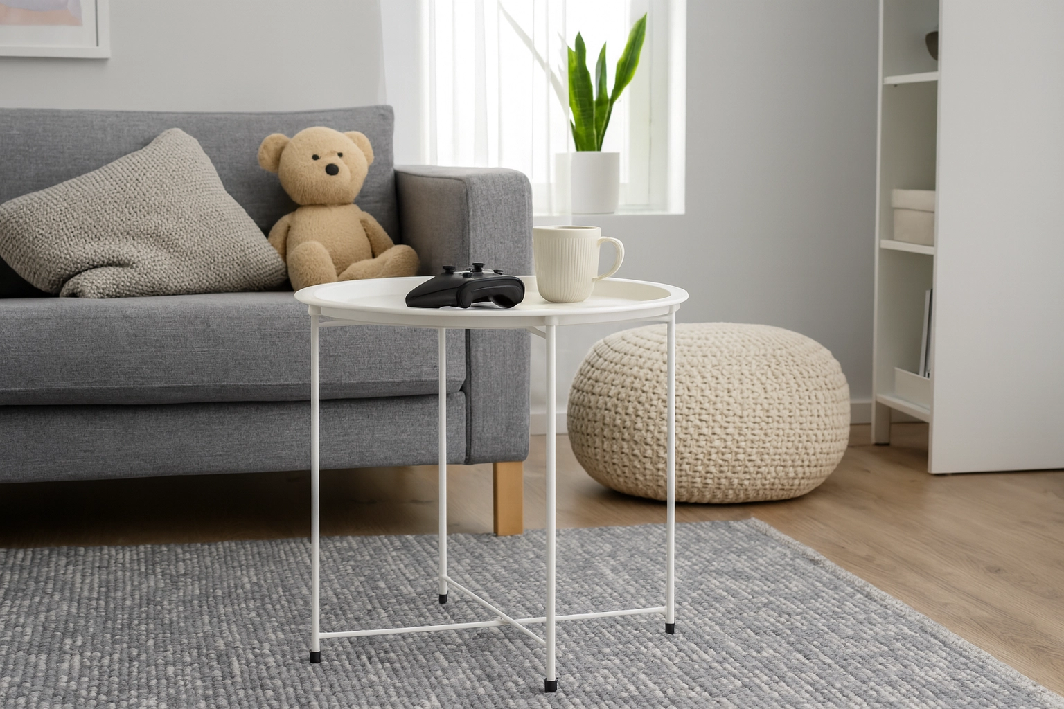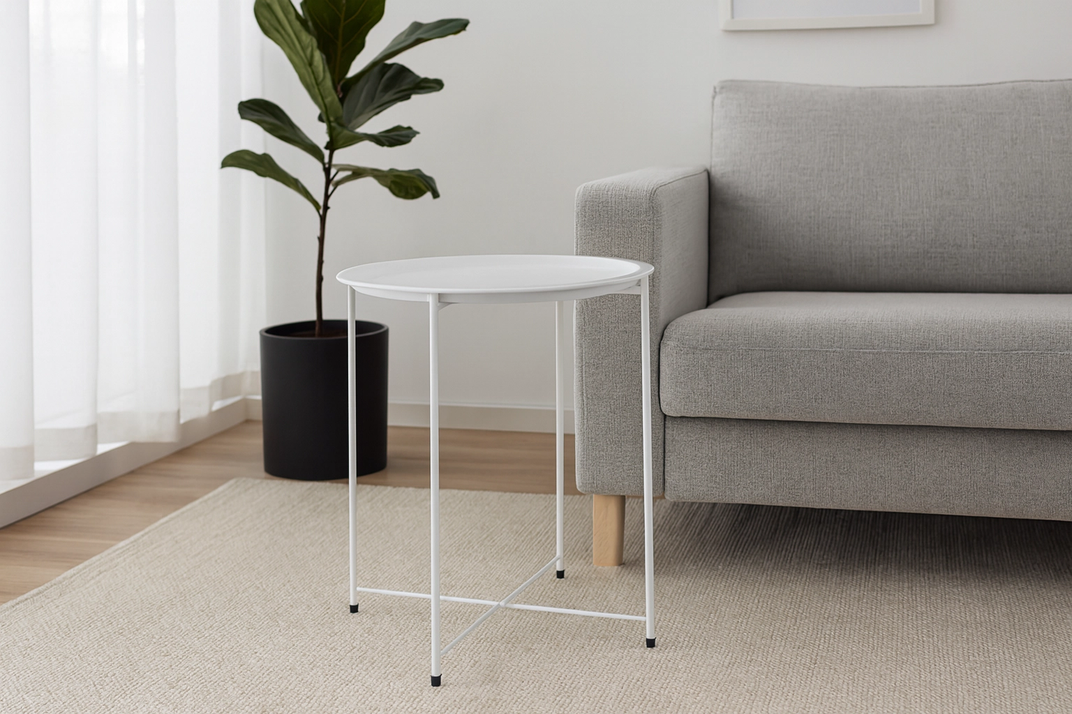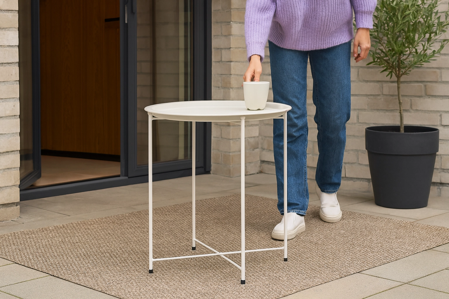 Dimensiunile compacte și cadrul suplu permit mutarea facilă între living, dormitor sau balcon – mereu la îndemână pentru cafea și decorațiuni.