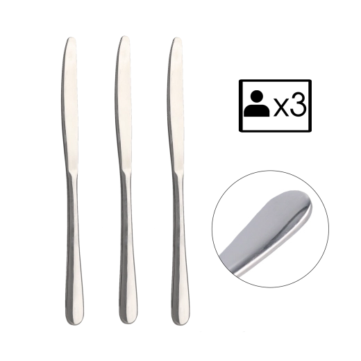 Setul de 3 cuțite Classic este o alegere practică pentru tăierea, tocarea și porționarea zilnică. Datorită oțelului inoxidabil de calitate, oferă durată de viață îndelungată, întreținere ușoară și tăiș fiabil. Construcția minimalistă, netedă, fără decorațiuni, se potrivește în orice bucătărie și se combină ușor cu restul ustensilelor.