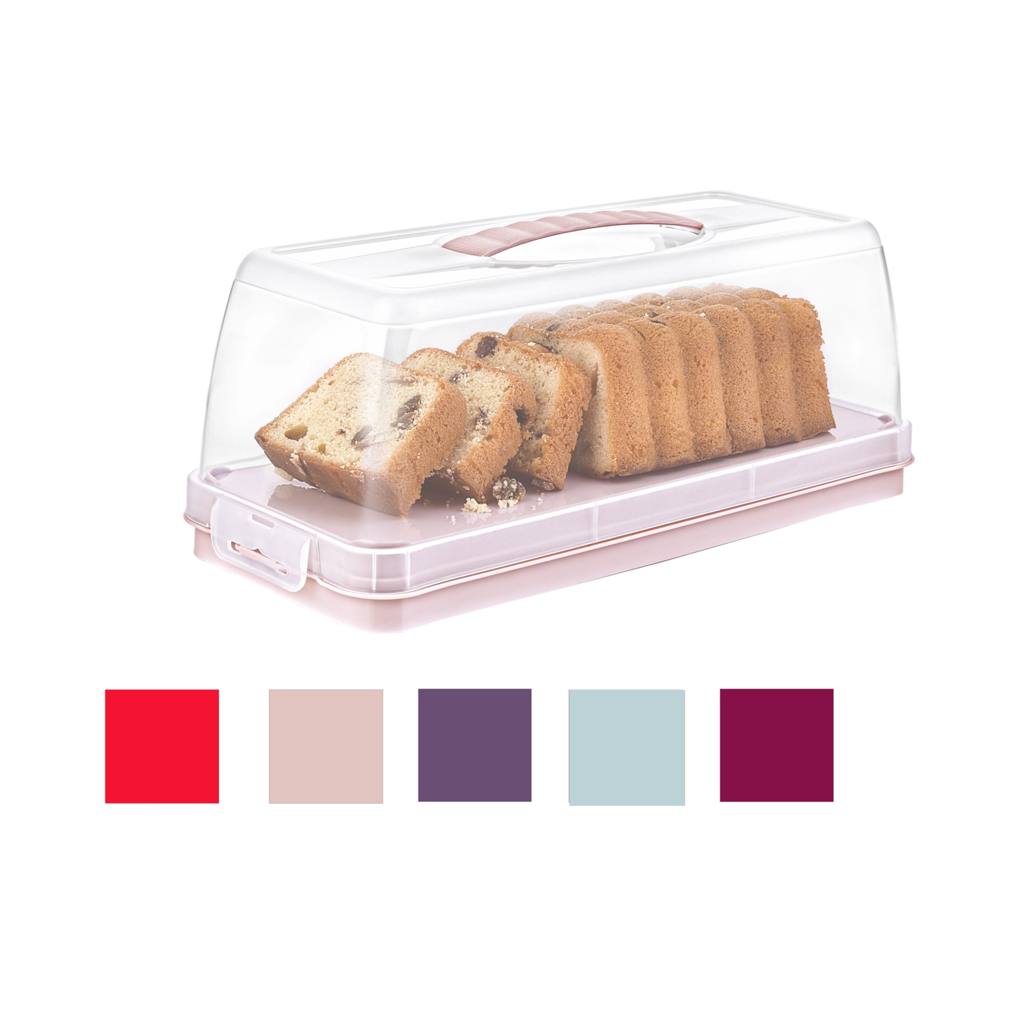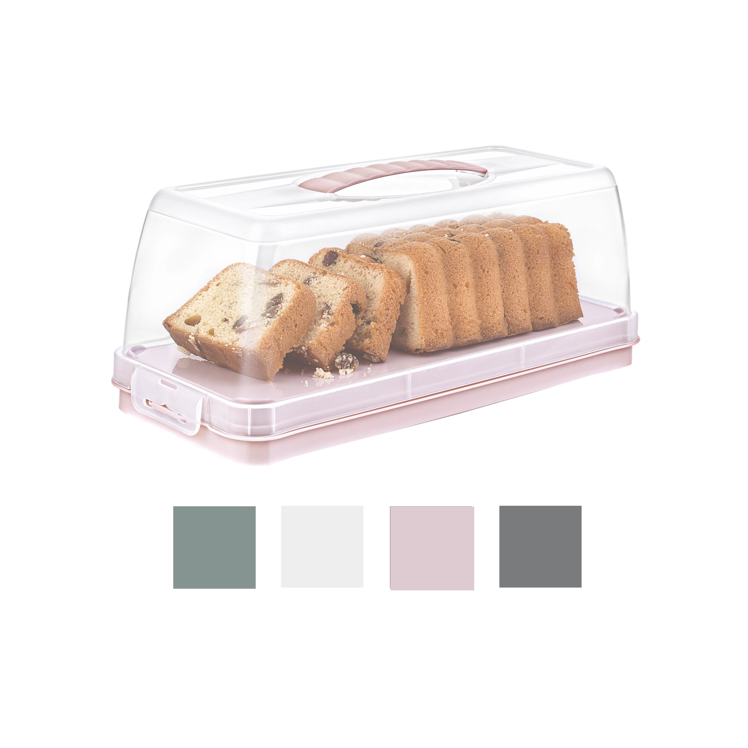 Clemele laterale solide și mânerul integrat mențin capacul în siguranță la locul lui și ușurează transportul torturilor, pâinilor și deserturilor fără riscul de deplasare.