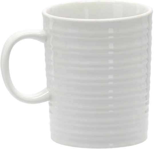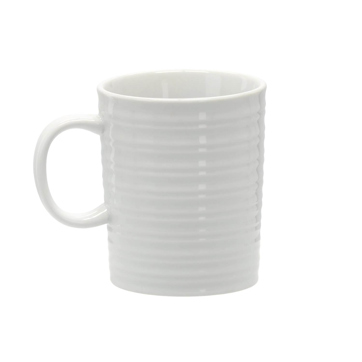Cană elegantă din porțelan, cu volum de 360 ml, ideală pentru cafeaua sau ceaiul de zi cu zi. Oferă un design atemporal alb lăptos cu relief fin și picioruș subtil, realizare manuală pentru unicitatea fiecărei piese și toartă ergonomică pentru priză confortabilă. Datorită porțelanului întărit, cana este rezistentă la șocuri și variații de temperatură și este potrivită pentru mașina de spălat vase și cuptorul cu microunde.