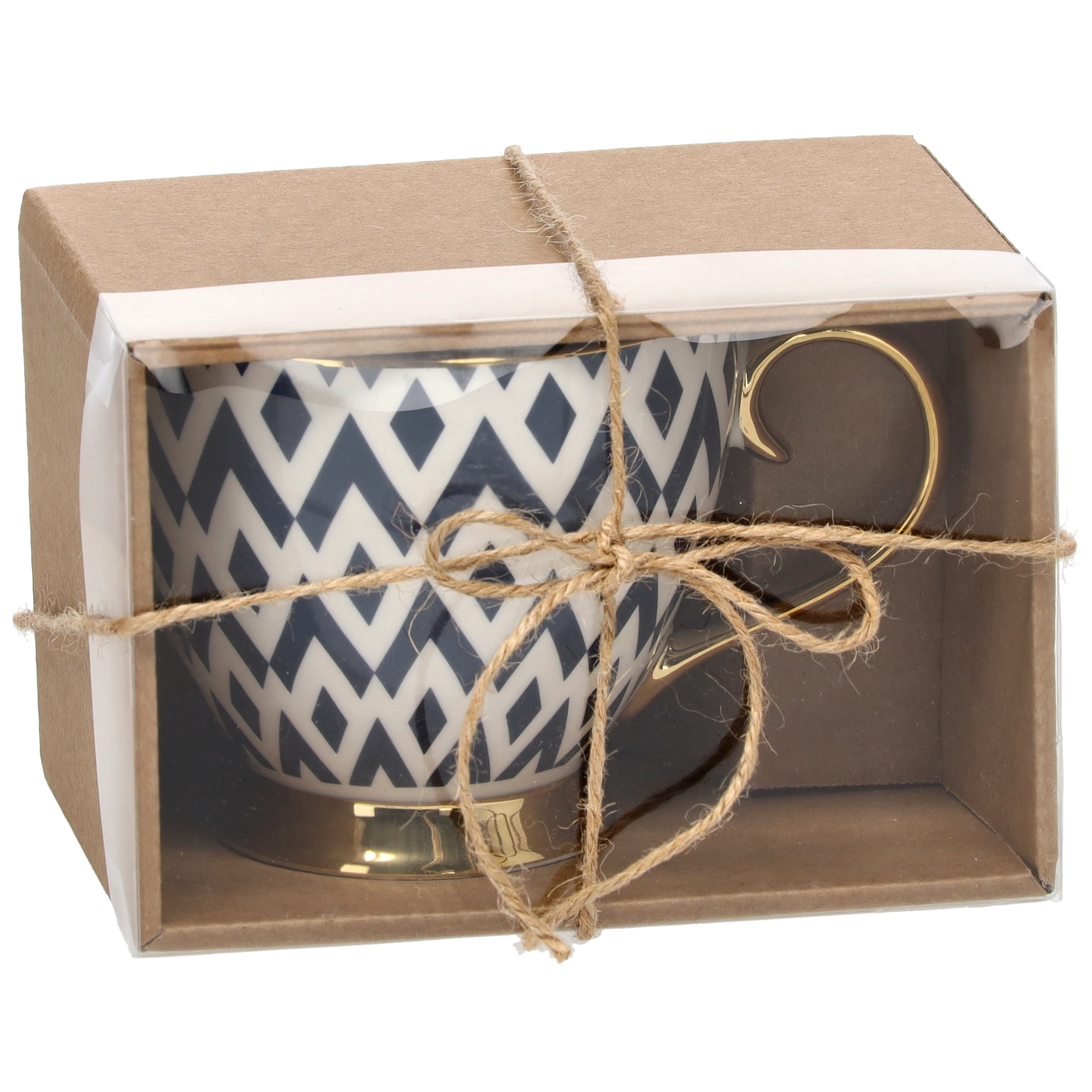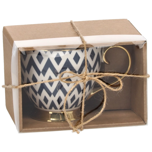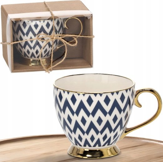 Cană este realizată din porțelan de înaltă calitate, rezistent și ușor de întreținut. Toarta ergonomică și piciorul stabil asigură o utilizare confortabilă și o poziționare sigură pe masă. Diversele modele geometrice oferă produsului un caracter unic și îl transformă într-o excelentă idee de cadou.