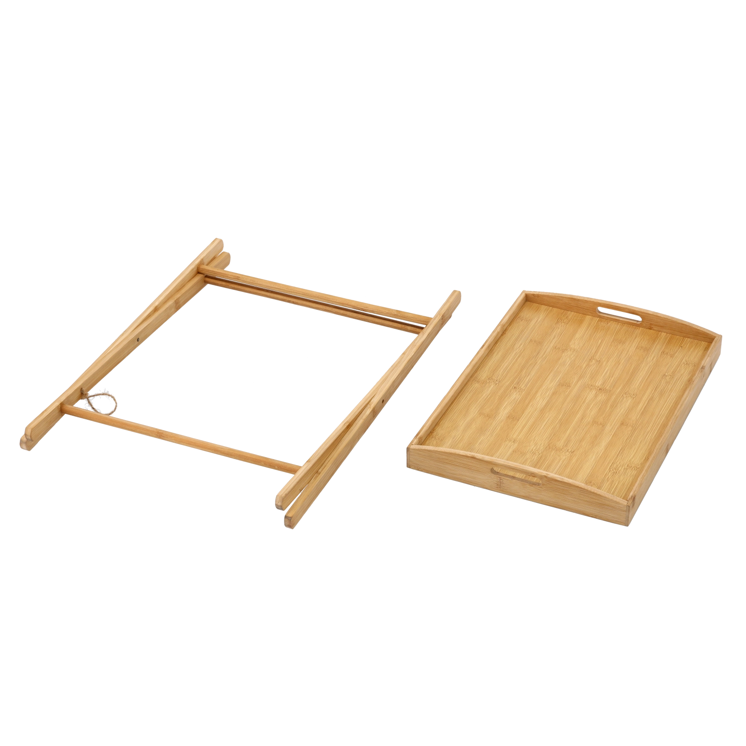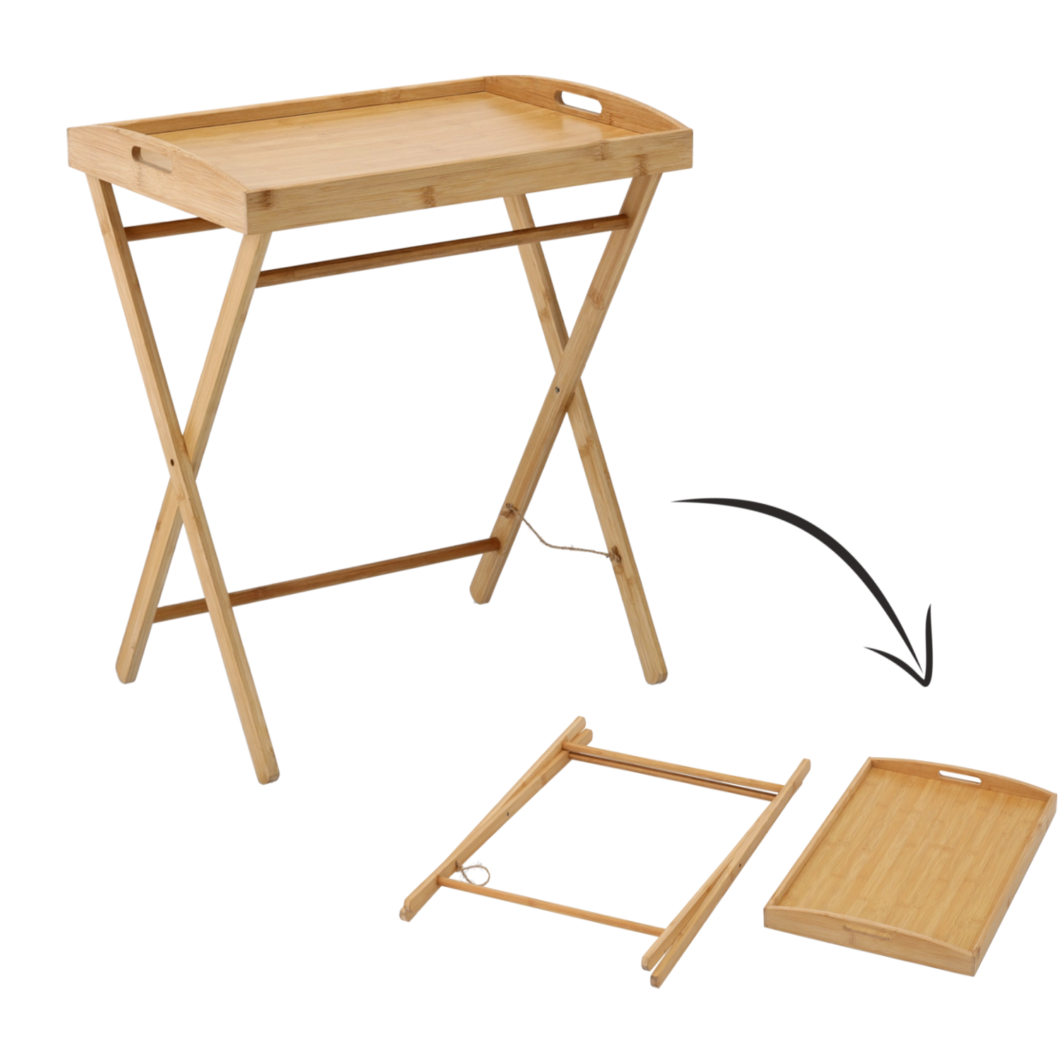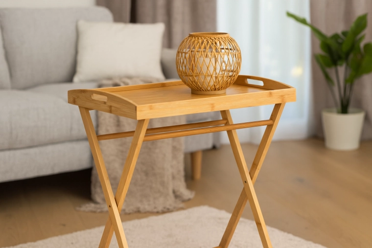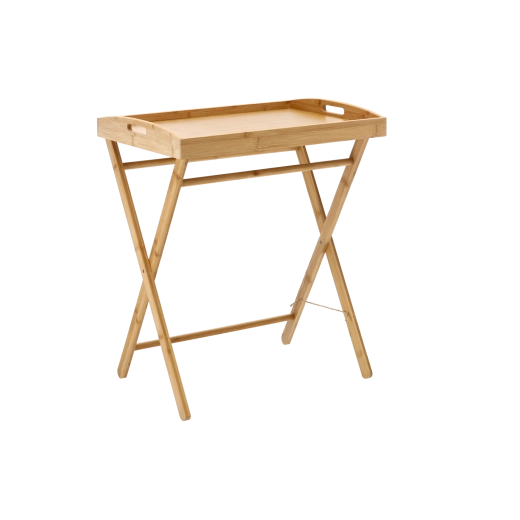 Bucură-te de confort acasă cu măsuța universală din bambus, care combină funcționalitatea, estetica și durabilitatea. Tava detașabilă cu margine înălțată și mânere laterale facilitează servirea și previne alunecarea obiectelor. Picioarele încrucișate robuste cu mecanism rabatabil asigură pliere rapidă și depozitare ușoară.