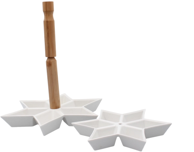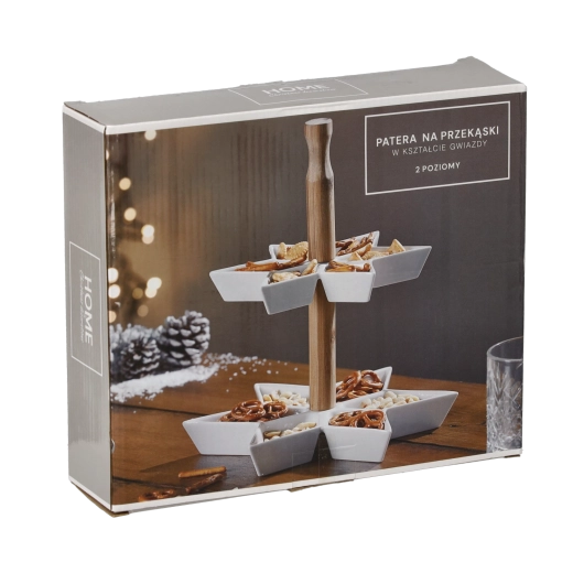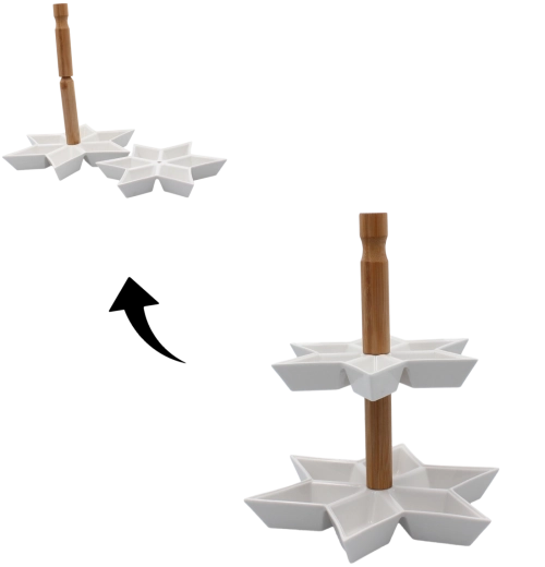 Acest suport de servire este perfect pentru deserturi, fructe, prăjituri, nuci sau tapas. Forma modernă de stea atrage atenția și se potrivește oricărui interior – de la petreceri în familie până la mese de sărbătoare.