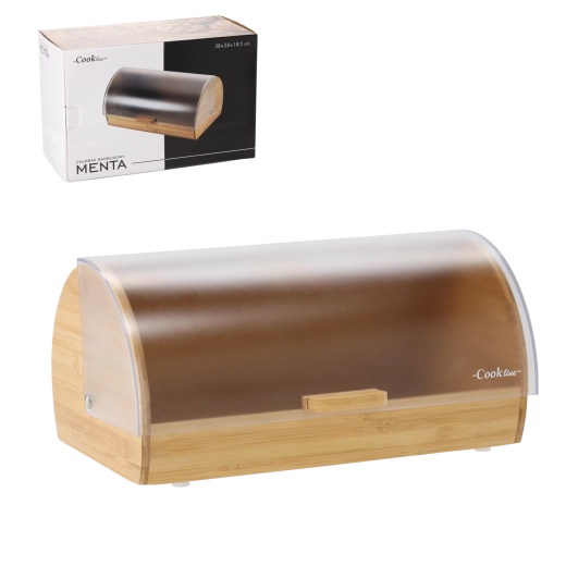 Cutia de pâine elegantă MENTA din bambus de calitate, cu capac rulou semi-transparent, păstrează produsele de panificație mai mult timp proaspete, protejate de praf și uscare. Volumul generos găzduiește o pâine, chifle și produse de panificație, iar mânerul ergonomic asigură o deschidere confortabilă. Designul modern atemporal completează perfect orice bucătărie.