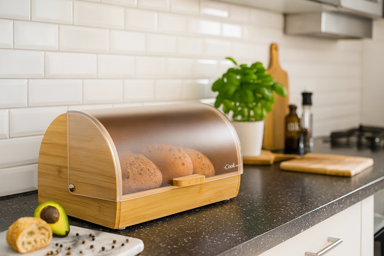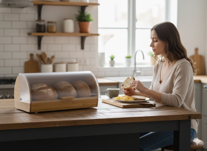 Capacul translucid protejează produsele de panificație de uscare și praf, permițând în același timp verificarea rapidă a conținutului fără deschidere.