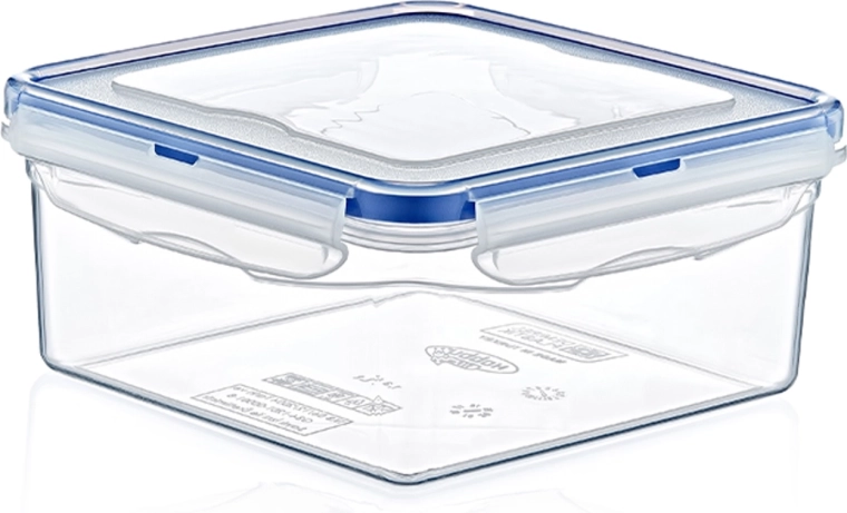 Recipient practic cu volum de 1,3 l pentru depozitarea zilnică a alimentelor. Datorită formei pătrate și dimensiunilor 17 × 17 × 8 cm, încape ușor în frigider și congelator. Pereții transparenți permit verificarea rapidă a conținutului, în timp ce cele patru cleme solide și garnitura din silicon asigură închidere ermetică și prospețime prelungită. Rezistă la temperaturi de -25 °C până la +95 °C, fiind potrivit pentru congelator, cuptor cu microunde și mașină de spălat vase.