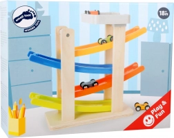 Pista aduce nu doar distracție, ci și sprijină învățarea și dezvoltarea coordonării. Designul compact și aspectul colorat fac din această jucărie un cadou grozav pentru orice ocazie. Mașinuțele în culori diferite sporesc atractivitatea și extind posibilitățile de joc, dezvoltând, pe lângă abilitățile motorii, și imaginația.