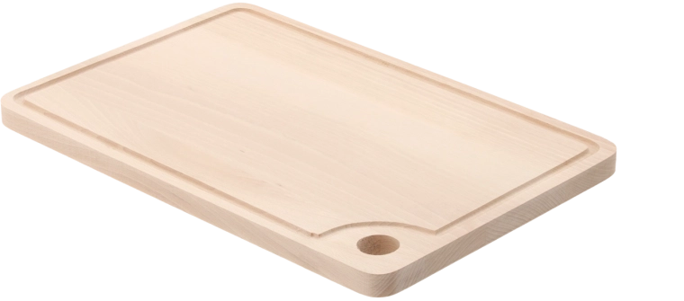 Descoperiți un tocător fiabil din lemn masiv de fag, care se remarcă prin duritate ridicată și durată lungă de viață. Este potrivit pentru tăierea cărnii, legumelor, fructelor și produselor de panificație, oferind o suprafață de lucru generoasă și siguranță la manevrarea cuțitului.