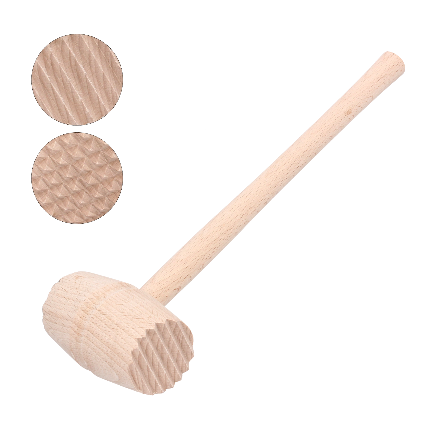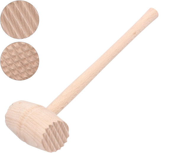 Acest ciocan din lemn pentru carne este un ajutor de încredere pentru pregătirea șnițelelor, rulourilor și a altor preparate din carne. Este fabricat din lemn de fag rezistent, tratat cu lac protector pentru o durată de viață mai lungă și o curățare mai ușoară. Cele două capete din inox cu diametrul de 4,5 cm permit frăgezirea uniformă și rapidă, fără a deteriora structura cărnii.