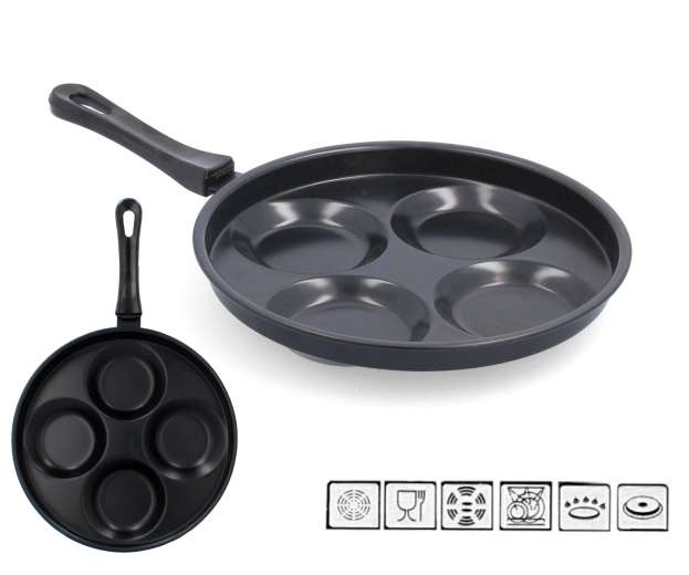 Tigaie practică pentru ouă, cu diametrul de 24 cm, din oțel carbon rezistent, cu strat antiaderent pentru prăjire ușoară fără lipire. Mânerul ergonomic din plastic asigură o prindere confortabilă și sigură, iar stratul exterior rezistent la căldură sporește durabilitatea în utilizarea de zi cu zi.