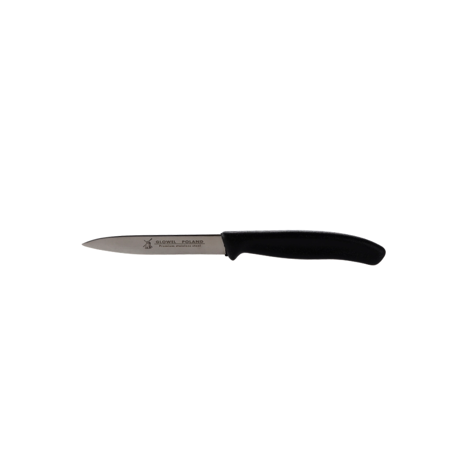 Cuțit de bucătărie practic cu lamă de 10 cm din oțel inoxidabil X46Cr13, ideal pentru decojirea fructelor și legumelor și pentru felierea ingredientelor mici. Oferă rezistență ridicată la coroziune, tăiș de lungă durată și mâner ergonomic din polipropilenă pentru o prindere confortabilă și sigură.