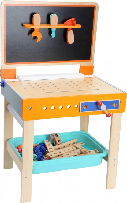 Datorită construcției stabile din lemn, cutiei de depozitare pentru componente clar organizate și componentelor de asamblare incluse, copiii își dezvoltă cu ușurință motricitatea fină, imaginația și gândirea tehnică. Ideală pentru camera copilului sau sala de joacă.