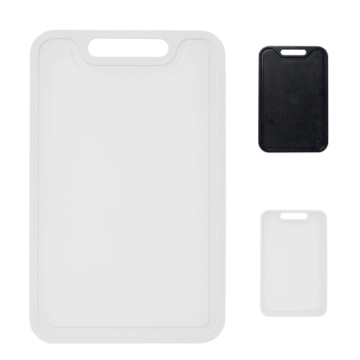 Tocător practic, cu dimensiunile 38 × 24 cm, ideal pentru gătitul zilnic. Oferă o suprafață netedă și rezistentă care protejează muchia cuțitelor, se curăță ușor și este potrivit pentru mașina de spălat vase. Datorită greutății reduse și mânerului practic, se manevrează confortabil și poate fi agățat cu ușurință. Este fabricat din polipropilenă fără BPA și este disponibil în culori moderne – alb, negru, gri.