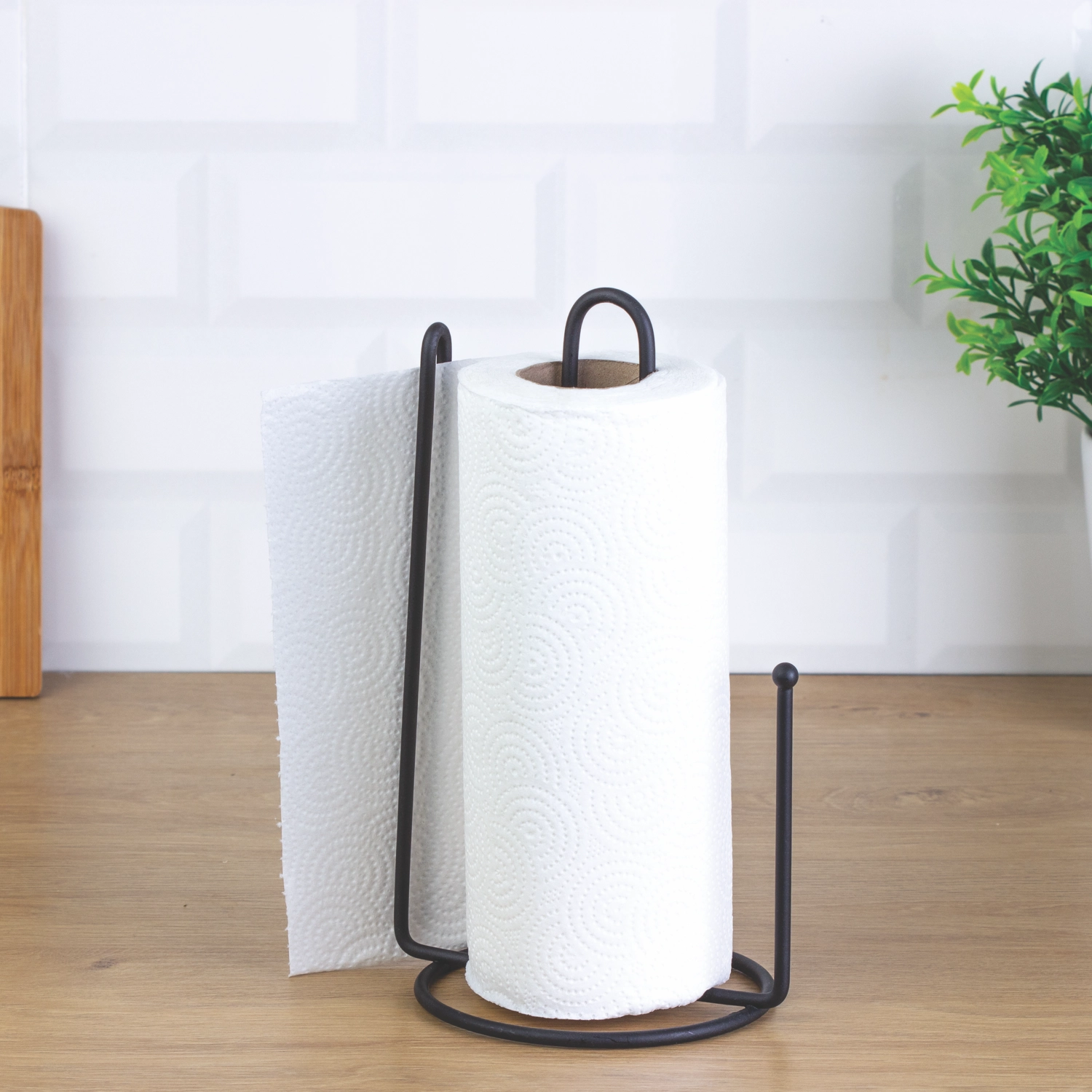 Baza circulară stabilă, cu diametrul de 15 cm, oferă sprijin sigur chiar și în utilizarea rapidă. Înălțimea de 32,5 cm este ideală pentru dimensiuni standard de role, astfel încât suportul se integrează fără probleme în rutina zilnică a gospodăriei. Aspectul minimalist în stil loft/industrial se combină ușor atât cu bucătăriile moderne, cât și cu cele rustice.