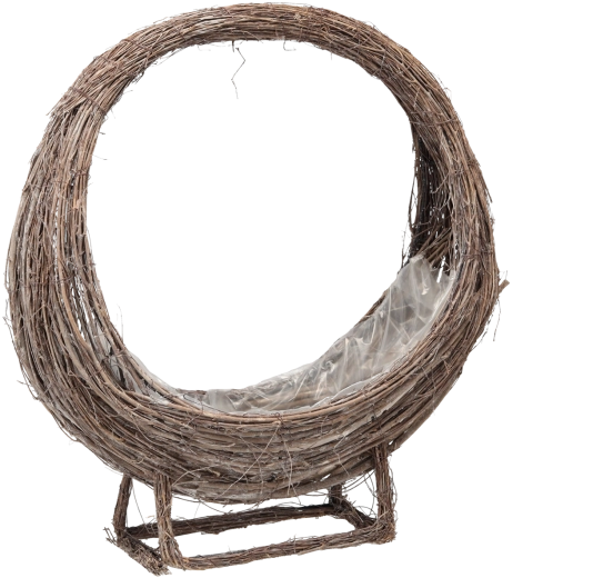 Elegantul suport din nuiele, cu formă rotundă, este ideal pentru cultivarea plantelor în interior și în exterior acoperit. Are o folie interioară care preîntâmpină scurgerile de apă și pământ, oferind astfel o soluție curată și practică pentru flori, ierburi aromatice și arbuști mici.