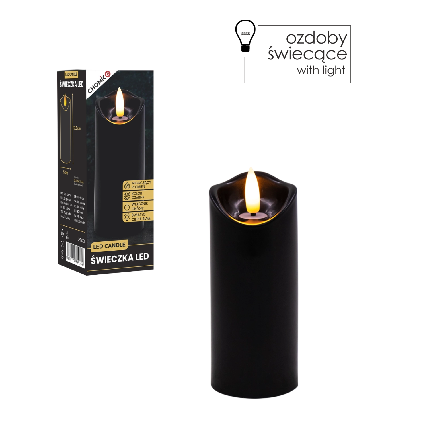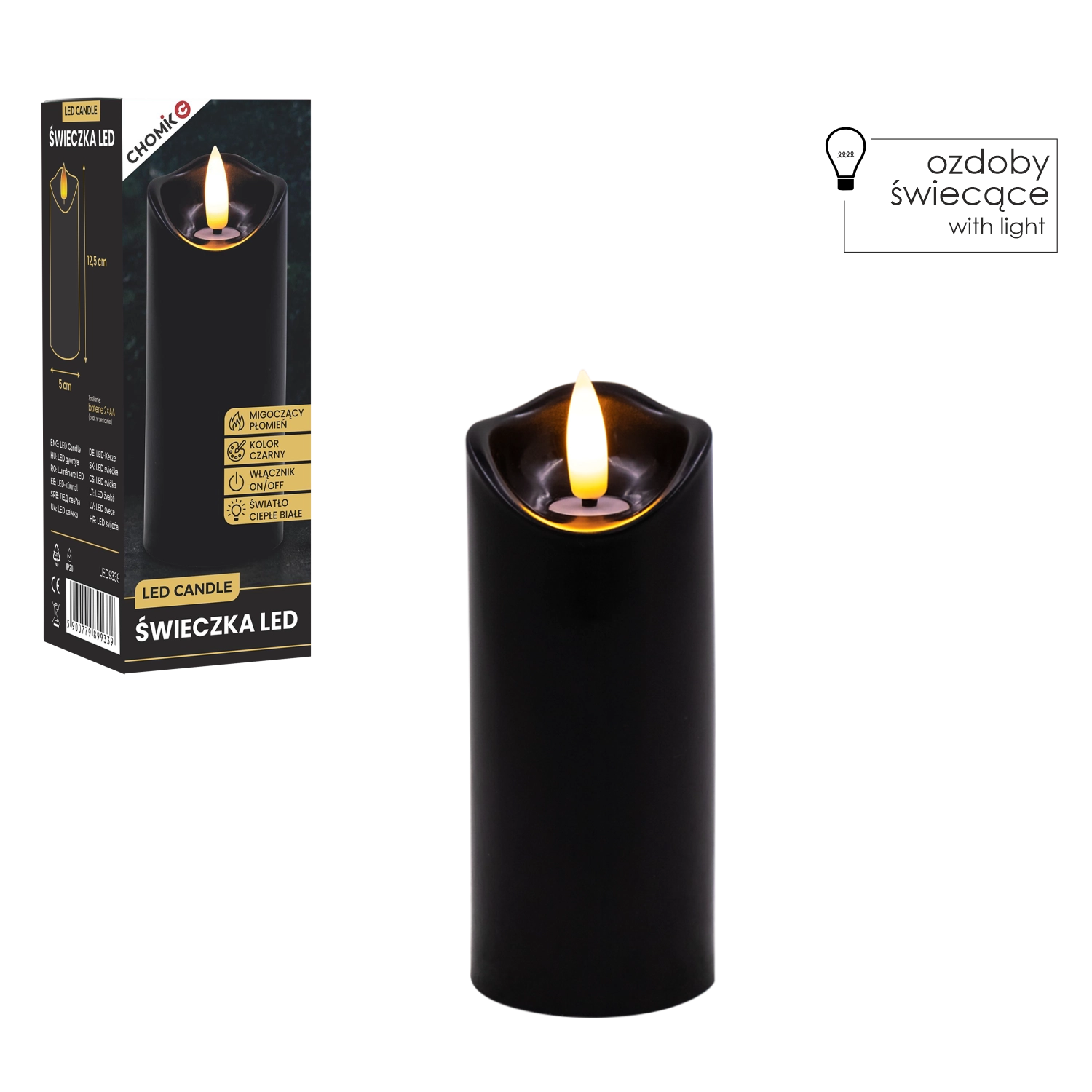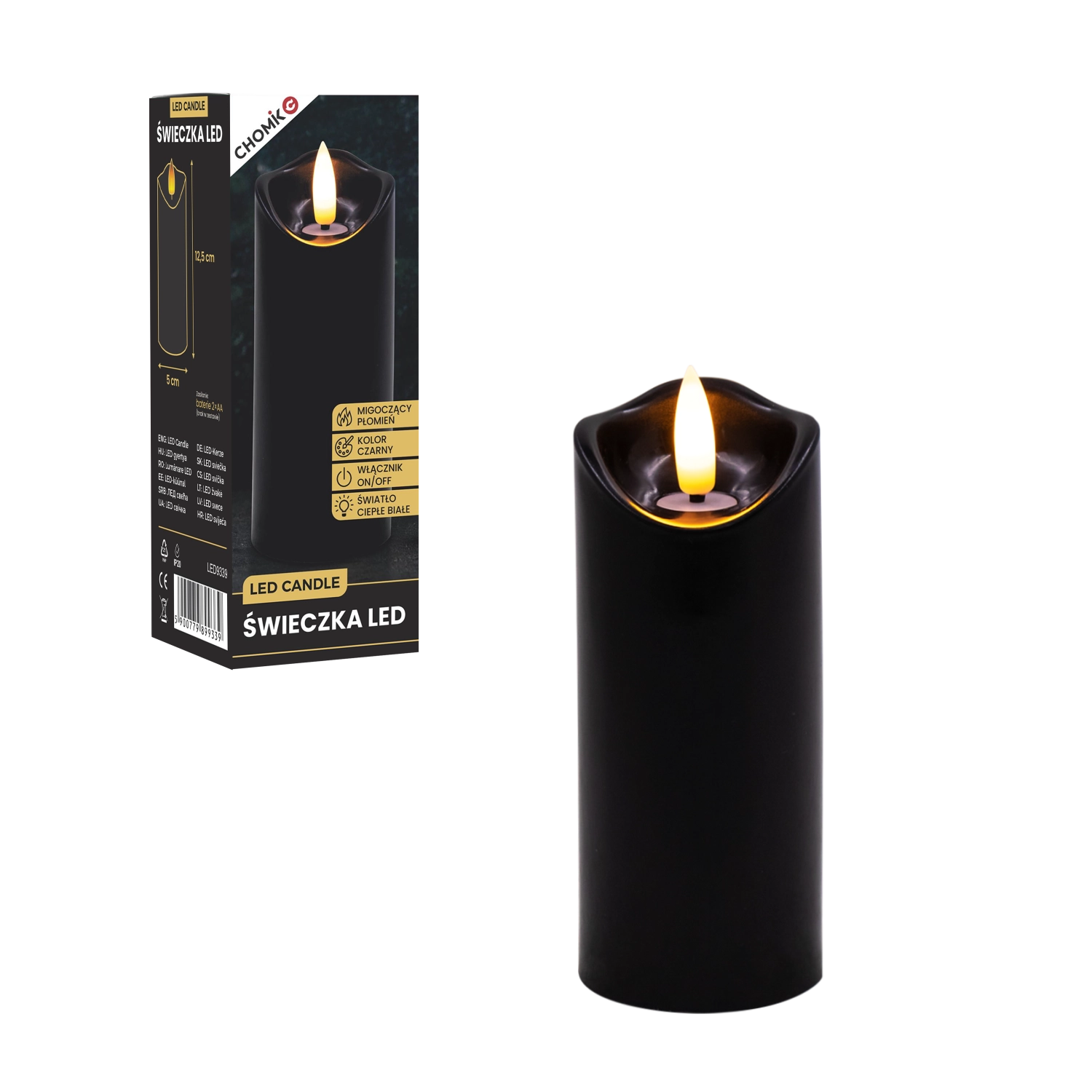 Creați lumină plăcută oricând și oriunde. Această lumânare LED neagră cu dimensiunile 5 × 12,5 cm luminează în alb cald și, datorită pâlpâirii realiste a flăcării, imită fidel o lumânare adevărată – fără mizerie, miros și riscul focului deschis.