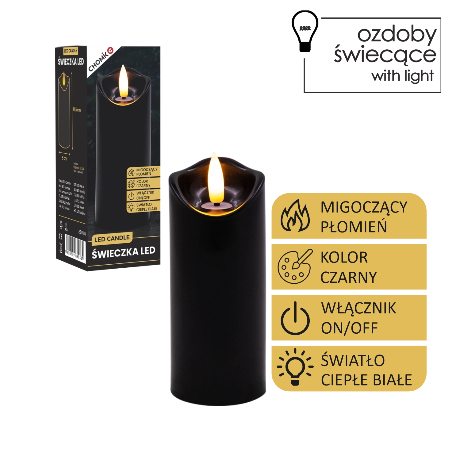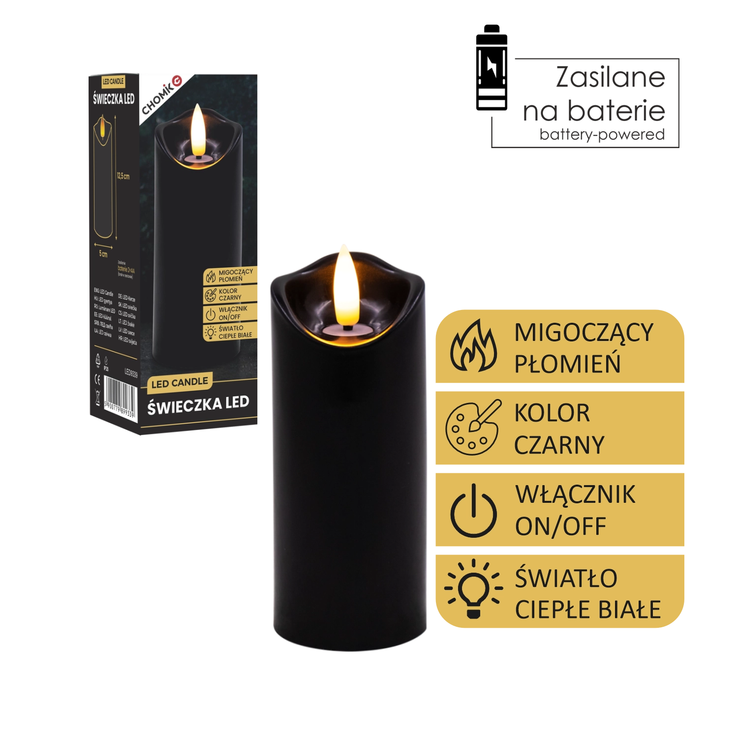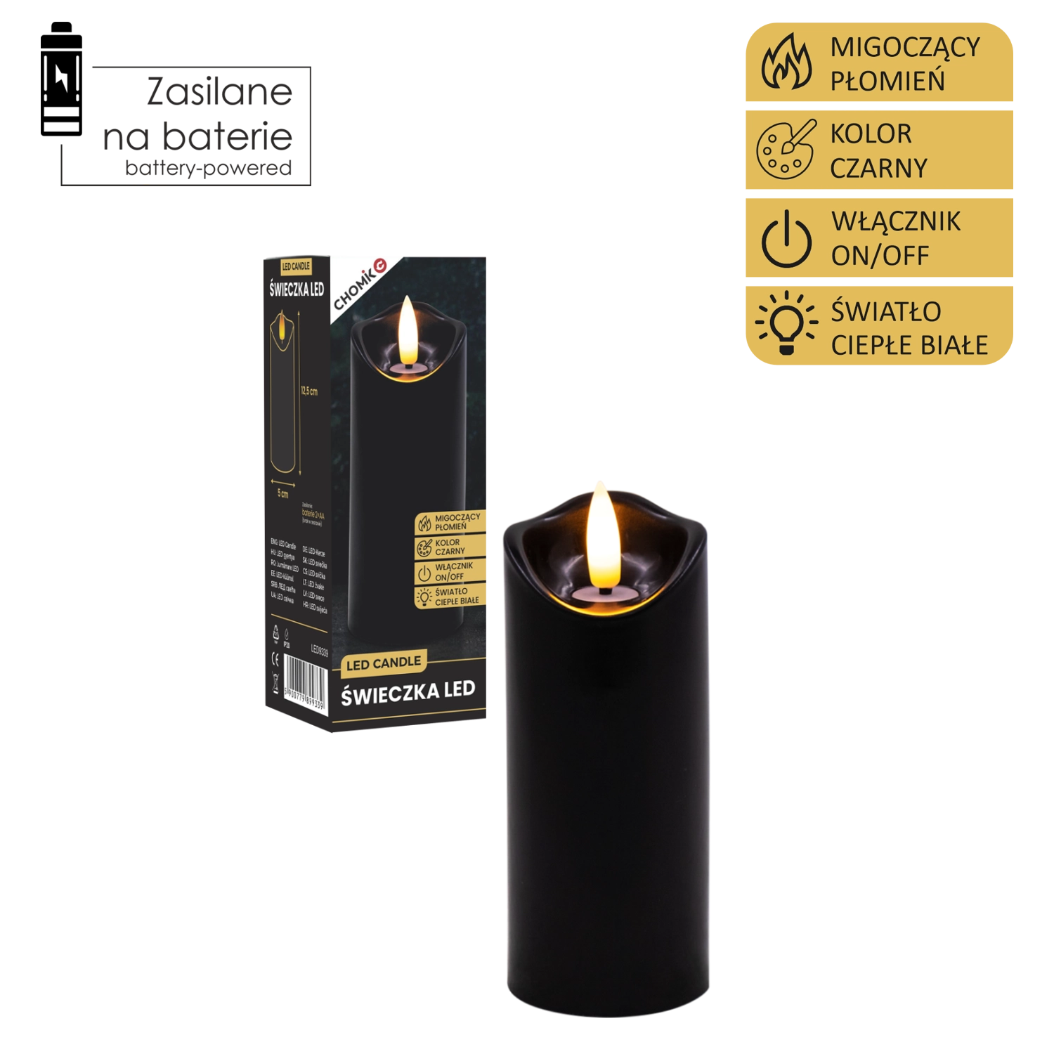 Creați lumină plăcută oricând și oriunde. Această lumânare LED neagră cu dimensiunile 5 × 12,5 cm luminează în alb cald și, datorită pâlpâirii realiste a flăcării, imită fidel o lumânare adevărată – fără mizerie, miros și riscul focului deschis.