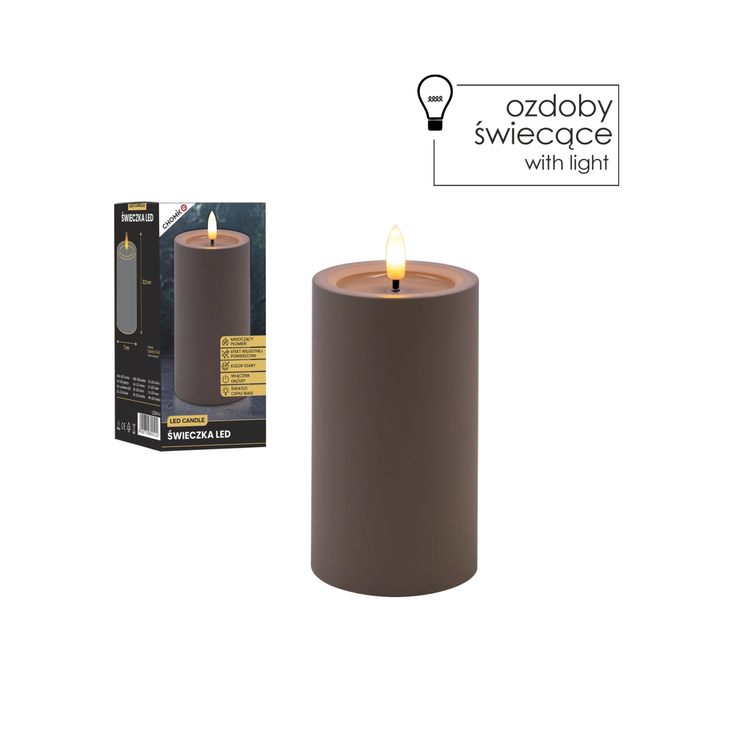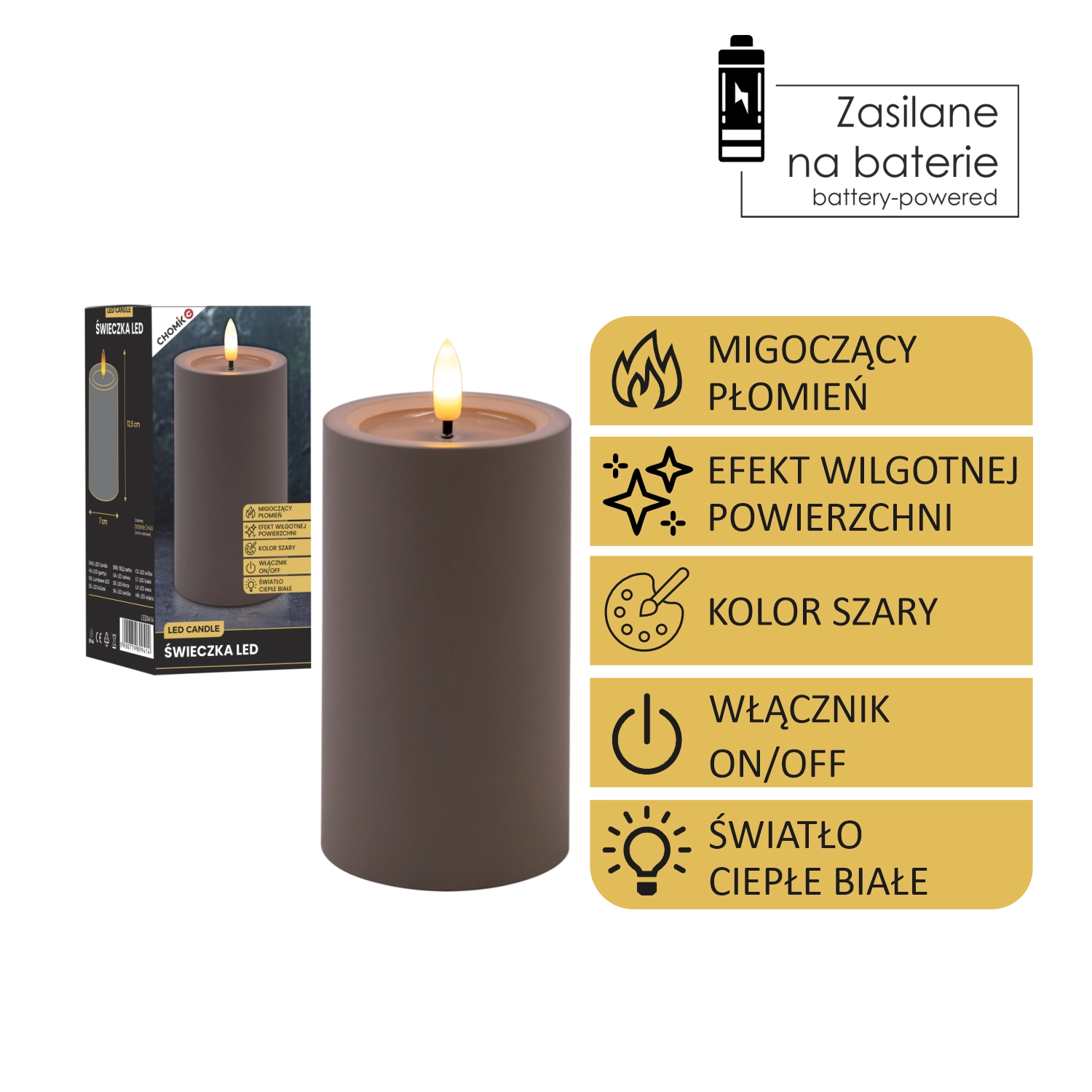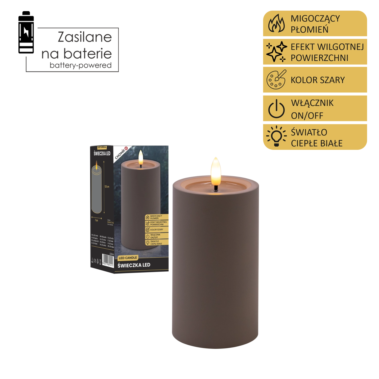 Această lumânare LED gri, stilată, aduce atmosfera unei flăcări reale fără fum și murdărie. Flacăra alb cald realistă pâlpâie delicat, iar efectul suprafeței superioare umede oferă un aspect autentic de ceară topită. Datorită culorii atemporale, se combină ușor cu diverse decorațiuni și stiluri de interior.