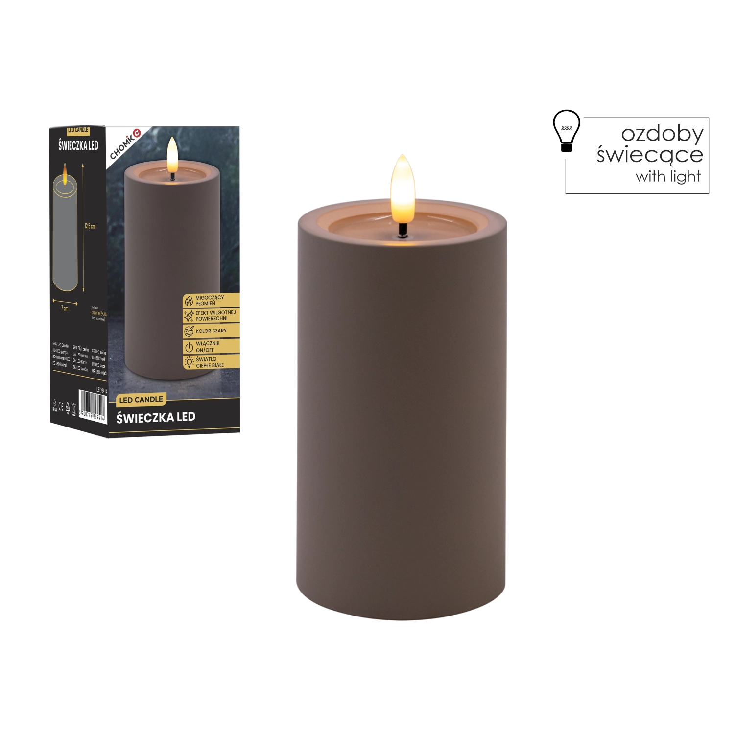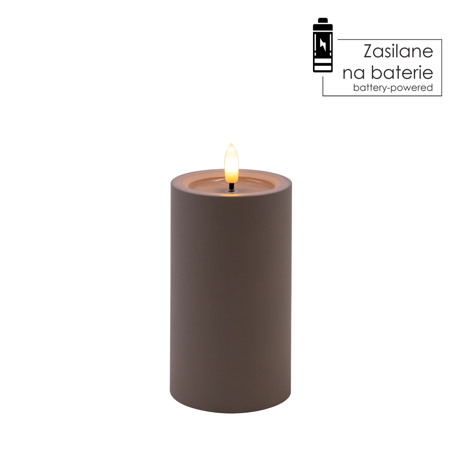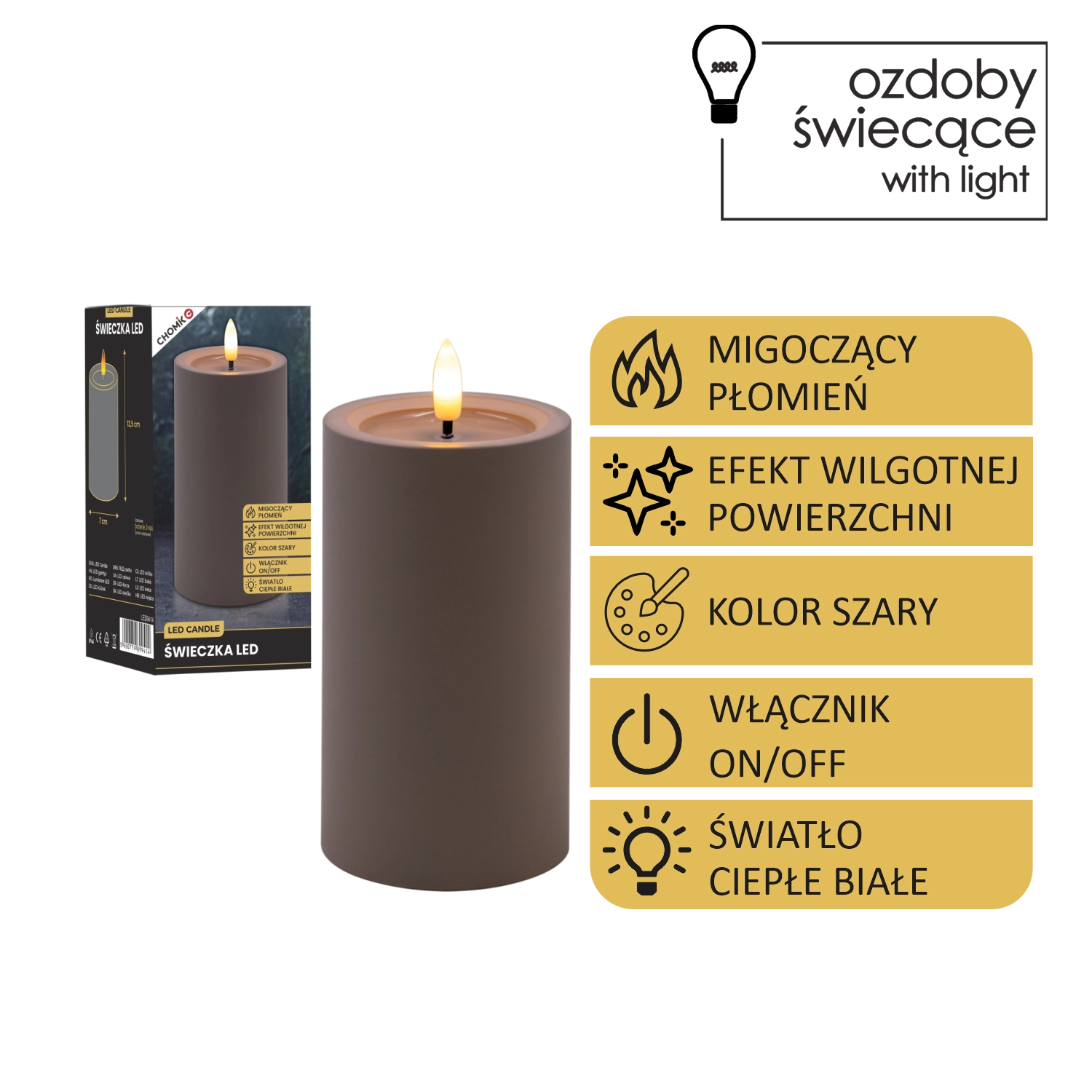 Această lumânare LED gri, stilată, aduce atmosfera unei flăcări reale fără fum și murdărie. Flacăra alb cald realistă pâlpâie delicat, iar efectul suprafeței superioare umede oferă un aspect autentic de ceară topită. Datorită culorii atemporale, se combină ușor cu diverse decorațiuni și stiluri de interior.