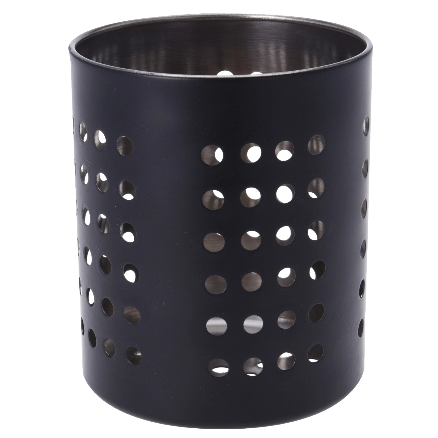 Scurgător și suport practic pentru tacâmuri și ustensile de bucătărie, în eleganta culoare negru mat, din oțel inoxidabil de înaltă calitate. Datorită diametrului de 10,5 cm și înălțimii de 13,5 cm, oferă spațiu suficient pentru linguri, furculițe și spatule. Suprafața perforată asigură circulația aerului și scurgerea rapidă, prevenind acumularea umezelii. Utilizare universală, întreținere ușoară și design modern pentru orice bucătărie.