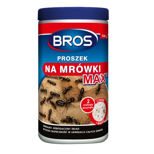 BROS pudră împotriva furnicilor MAX 100 g este o soluție profesională pentru combaterea furnicilor în locuințe și în imediata lor vecinătate. Tipul dublu de momeală (zaharată și proteică) crește atractivitatea produsului pentru diferite stadii și nevoi ale populației de furnici, determinând consumul și transportul în cuib. Astfel se elimină eficient nu doar insectele vizibile, ci și întreaga colonie, inclusiv cuibul.