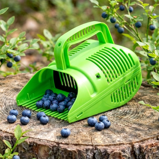 Culegător practic de fructe de pădure cu pieptene pentru recoltare rapidă și delicată a fructelor mici. Datorită prizei ergonomice și construcției închise, fructele nu cad, iar recoltarea este rapidă, confortabilă și curată. Fabricat din plastic rezistent de culoare verde, ideal pentru afine, coacăze, aronie și fructe de pădure.