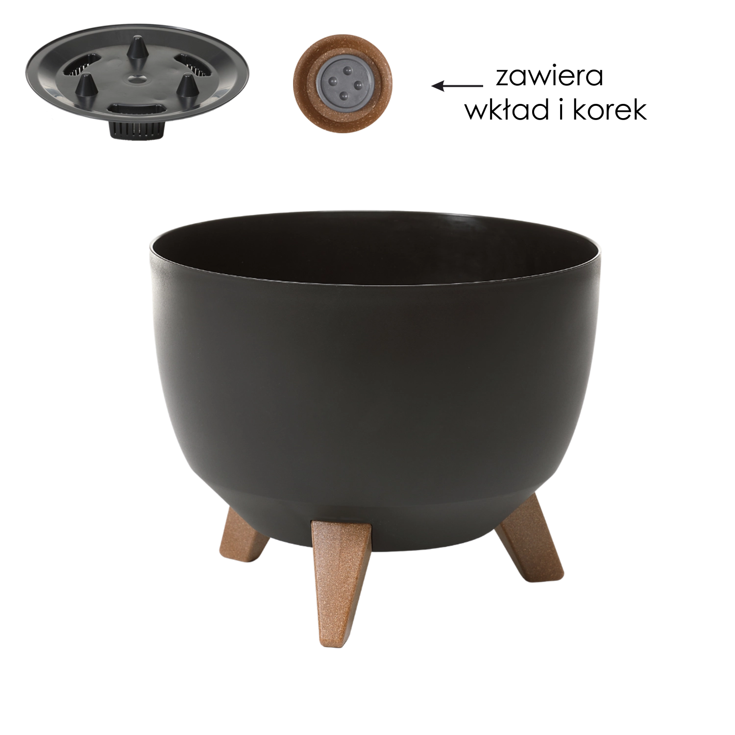 Bolul stilat pentru flori Roma aduce linii curate și un aspect atemporal, care se potrivește perfect în interioare moderne și pe balcon. Suprafața neagră mată și piciorușele cu efect de lemn pun în valoare verdele plantelor și în același timp ridică vasul pentru un drenaj și o circulație a aerului mai bune.
