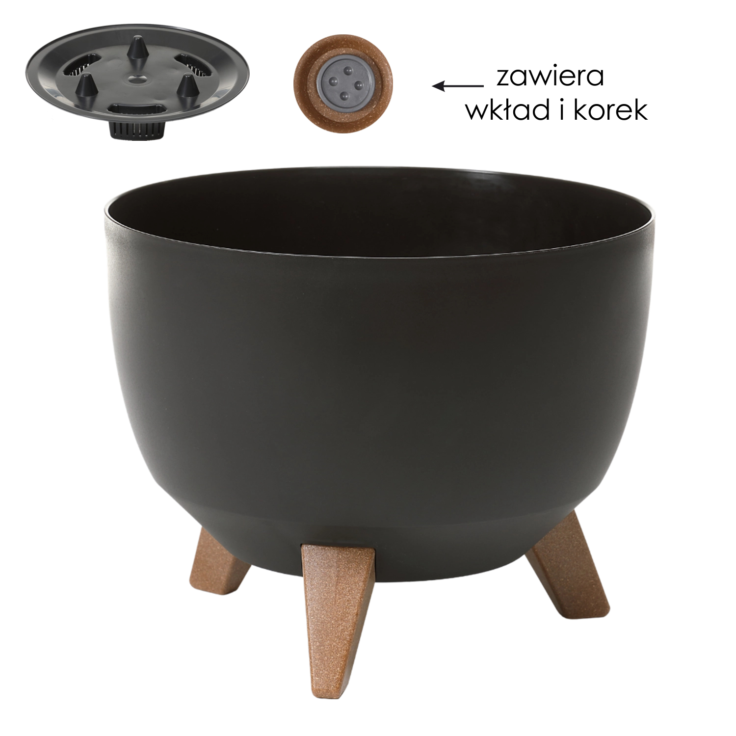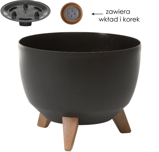 Bolul stilat pentru flori ROMA, cu diametrul de 33 cm, în eleganta culoare neagră, adaugă interiorului un aer modern. Are suprafață mată, formă originală și picioare stabile cu decor de lemn. Este realizat din plastic rezistent cu protecție UV, face față umidității și soarelui și, datorită volumului de 12,4 l, oferă suficient spațiu pentru creșterea plantelor. Montajul fără unelte permite utilizarea imediată acasă sau pe balcon.