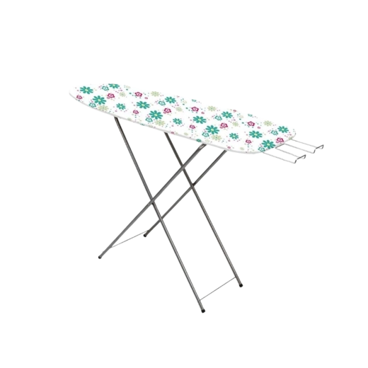 Husa din bumbac 100% cu umplutură de spumă de 3 mm creează o suprafață netedă care protejează țesăturile și accelerează munca. Masa este ușoară, se pliază ușor, iar capacele din plastic de pe picioare previn alunecarea și protejează pardoseala. Suprafața inteligent concepută pentru așezarea fierului de călcat se poate glisa sub masă, astfel încât nu ocupă spațiu la depozitare.
