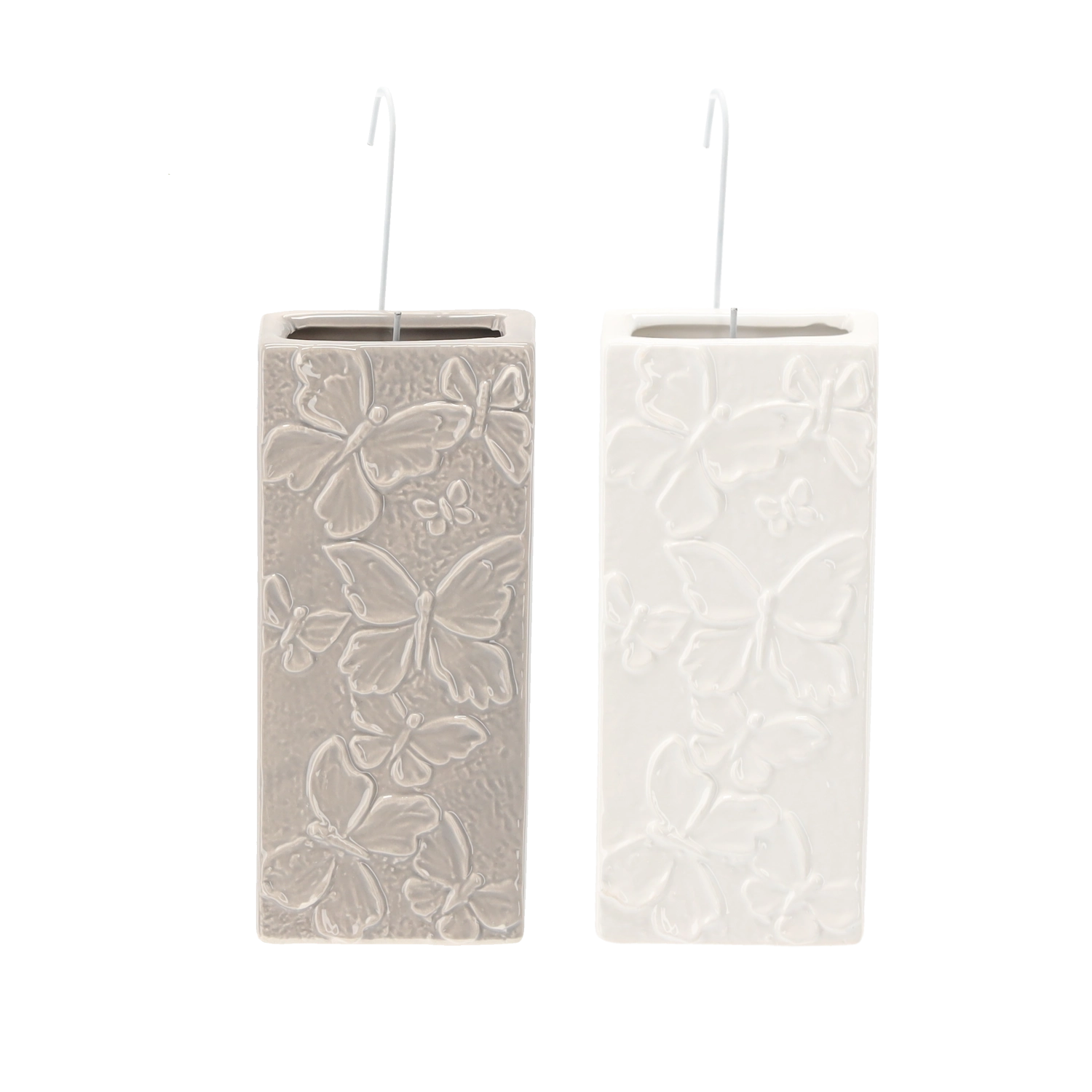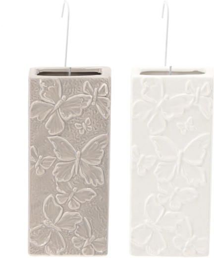 Umidificatoarele ceramice decorative pentru calorifer, cu relief de fluturi, cresc în mod natural umiditatea în interior fără electricitate și fără zgomot. În pachet sunt 6 bucăți în mix de culori, fiecare cu cârlig metalic pentru agățare și orificiu de umplere superior. Designul stilat în variante alb și bej oferă casei un aspect elegant și ajută împotriva aerului uscat în sezonul de încălzire.