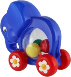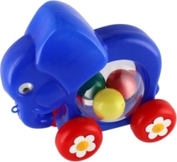 Acest elefant colorat de tras este o jucărie grozavă pentru primii pași. Datorită roților solide se deplasează ușor și îi motivează pe copii la mers și joacă activă. Partea transparentă ascunde bile multicolore care, la mișcare, zornăie, stimulând auzul și văzul.