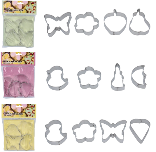 Setul de forme MONDEX cu motive de primăvară este alegerea ideală pentru coptul de acasă sau pentru ocazii speciale. Datorită execuției precise, veți obține forme curate și exacte fără ruperea aluatului. Potrivite nu doar pentru biscuiți, ci și pentru marțipan, fondant și alte decorațiuni de cofetărie.
