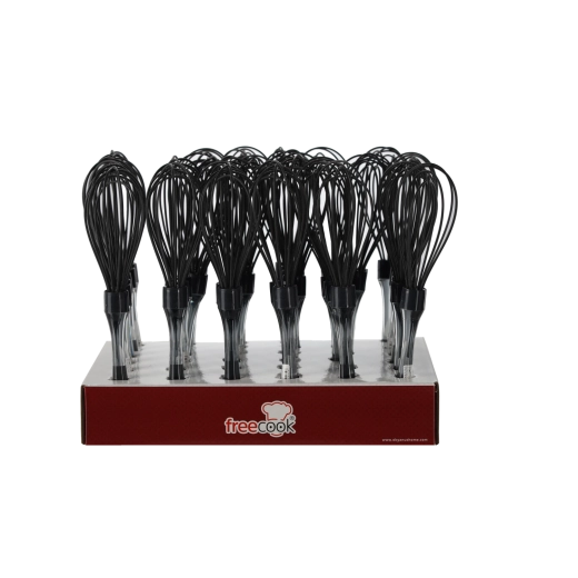 Telul din silicon de 26 cm este un ajutor de încredere în bucătărie pentru bătut ouă, frișcă, sosuri și aluaturi. Siliconul de calitate protejează suprafața vaselor, nu zgârie tigăile sau oalele antiaderente și, datorită rezistenței la temperatură, face față și compozițiilor fierbinți.
