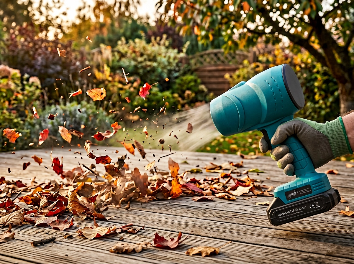 Puterea de 800 W și turațiile ridicate ale motorului curăță suprafețele de lucru, uneltele și terasele în câteva clipe. Ideală pentru praf, rumeguș și frunze uscate.