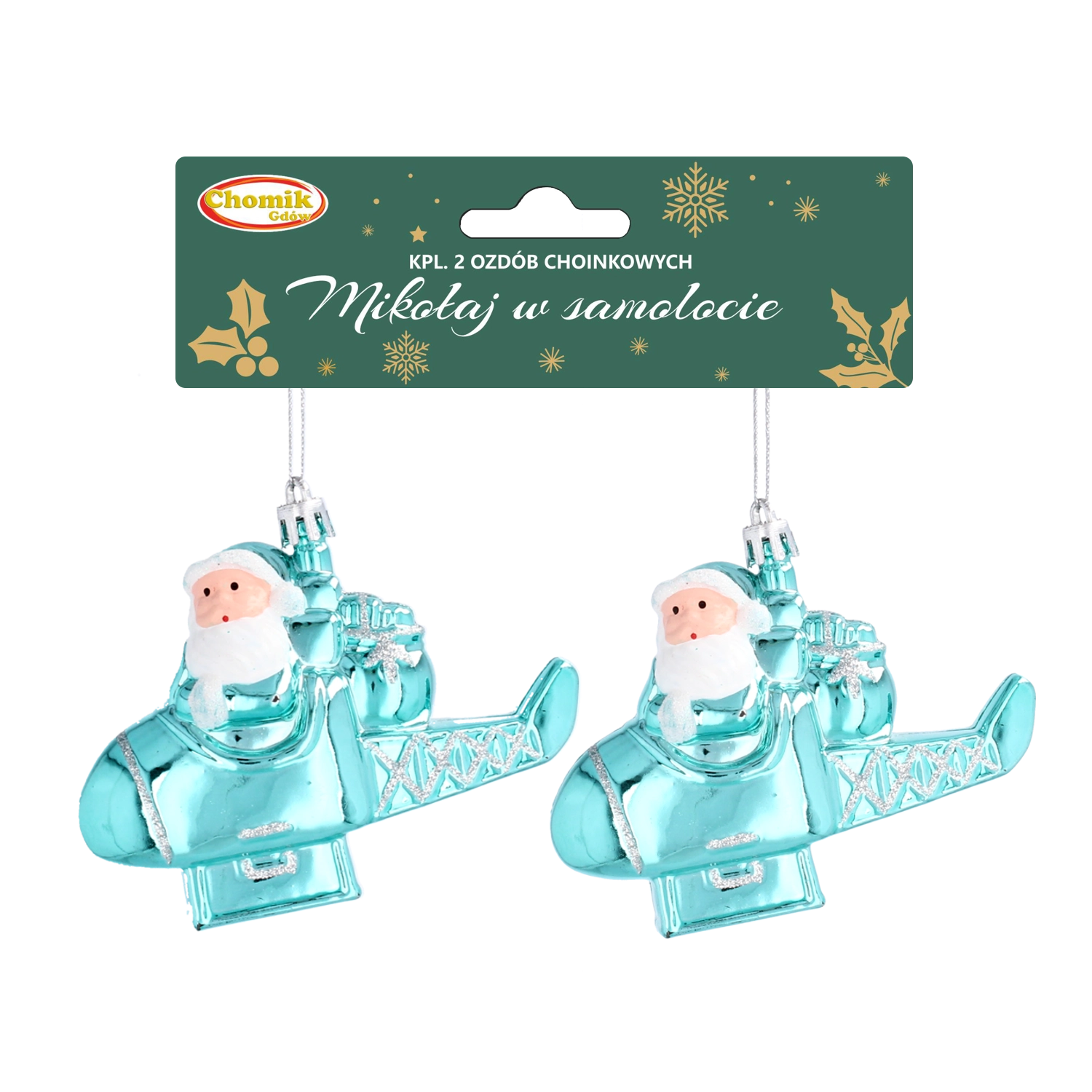 Adu în casa ta magia sărbătorilor cu un set original de două decorațiuni suspendate cu motivul Moș Crăciun în avion. Execuție atentă, plastic rezistent și design festiv multicolor, potrivite atât pentru interioare tradiționale, cât și moderne. Ideal pentru bradul de Crăciun, dar și ca decorațiune pentru ferestre, șemineu sau masa festivă.