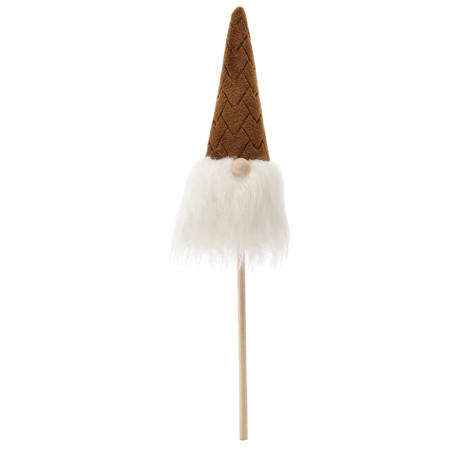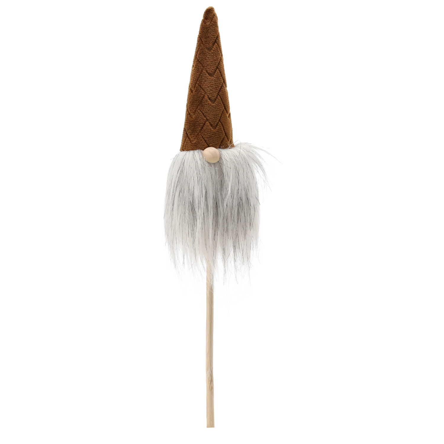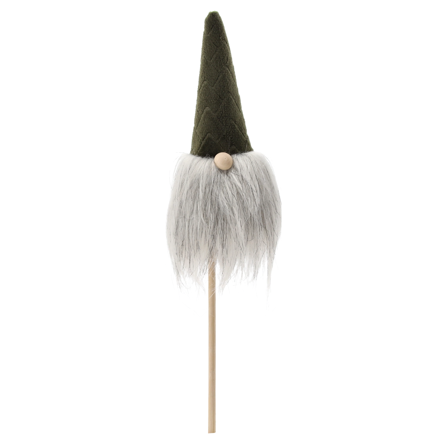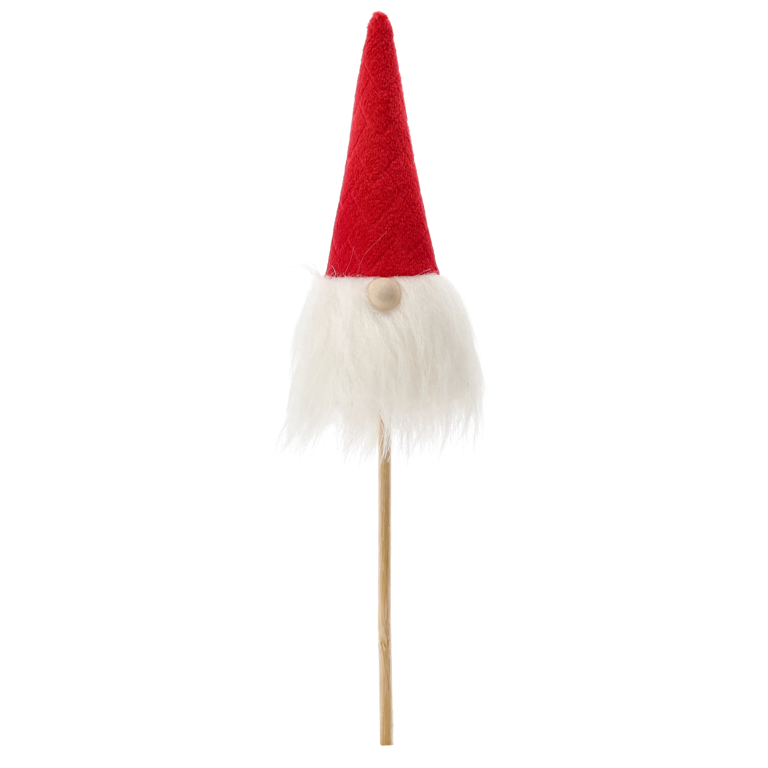 Un spiriduș decorativ drăguț pe băț, cu înălțimea de 24 cm, creează imediat o atmosferă festivă acasă sau la birou. Datorită materialului moale și plăcut, detaliilor atent lucrate ale căciulii și bărbii și mixului de variante de culori, completează cu ușurință decorul meselor, rafturilor și aranjamentelor florale.