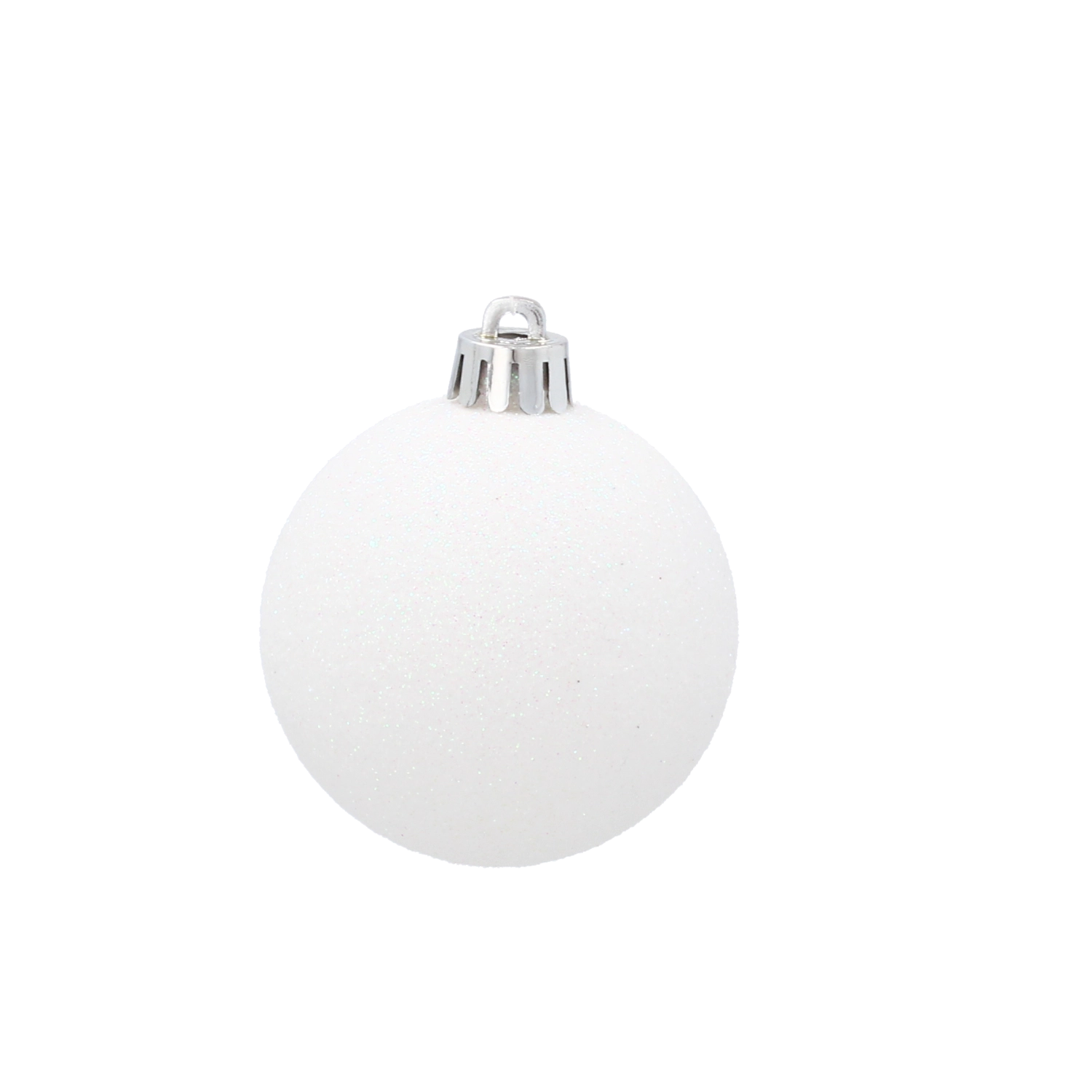 Acest set stilat de globuri albe îmbină designul minimalist cu o rezistență ridicată. Datorită execuției din plastic, nu trebuie să îți faci griji că se sparg – o alegere ideală pentru locuințele cu copii sau animale de companie. Construcția ușoară asigură agățare facilă și sigură pe orice tip de brad de Crăciun.