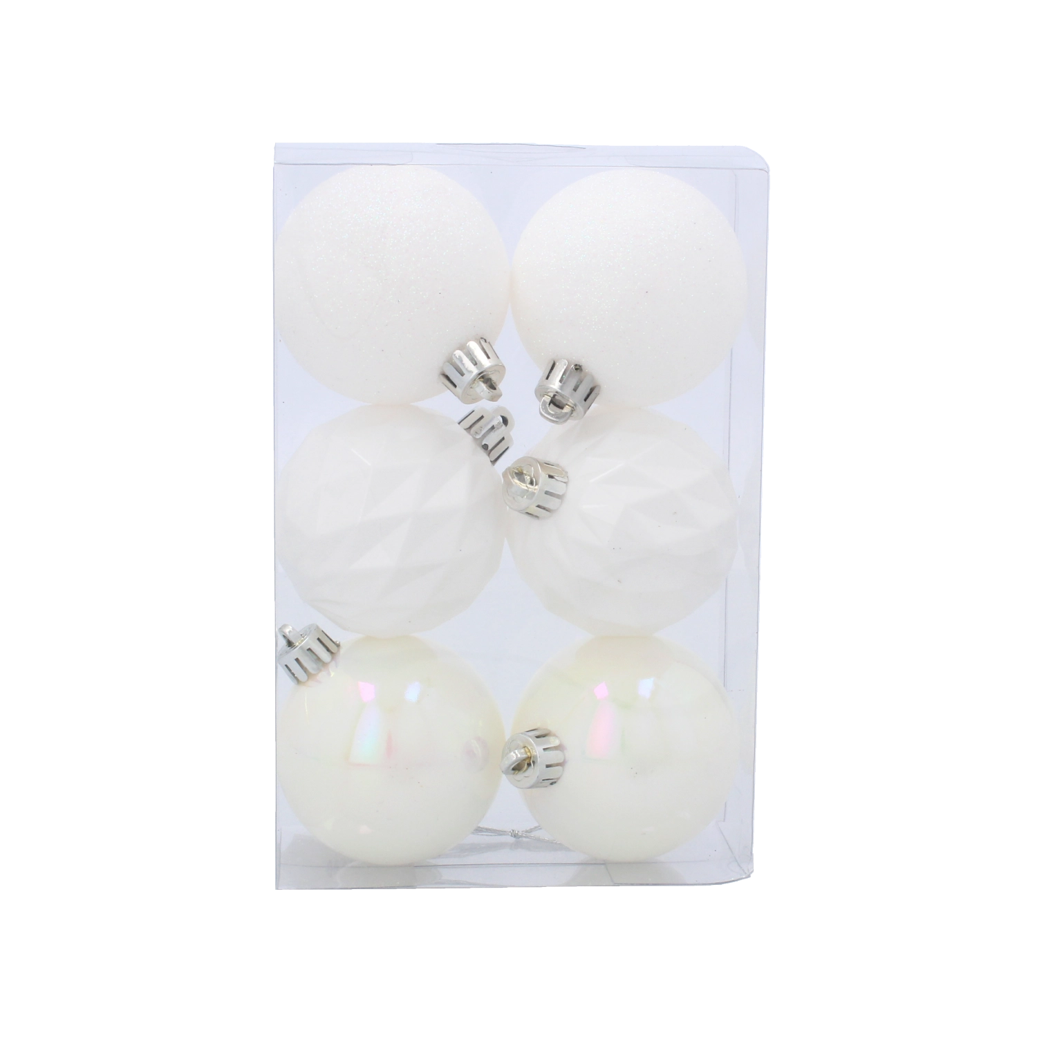 Fiecare glob este prevăzut cu inel metalic de prindere, iar setul este așezat într-o cutie practică pentru depozitare ordonată după sărbători. Combinația de texturi mată, sidefată și fațetată creează un aspect armonios și luxos, potrivit atât pentru decoruri tradiționale, cât și moderne.