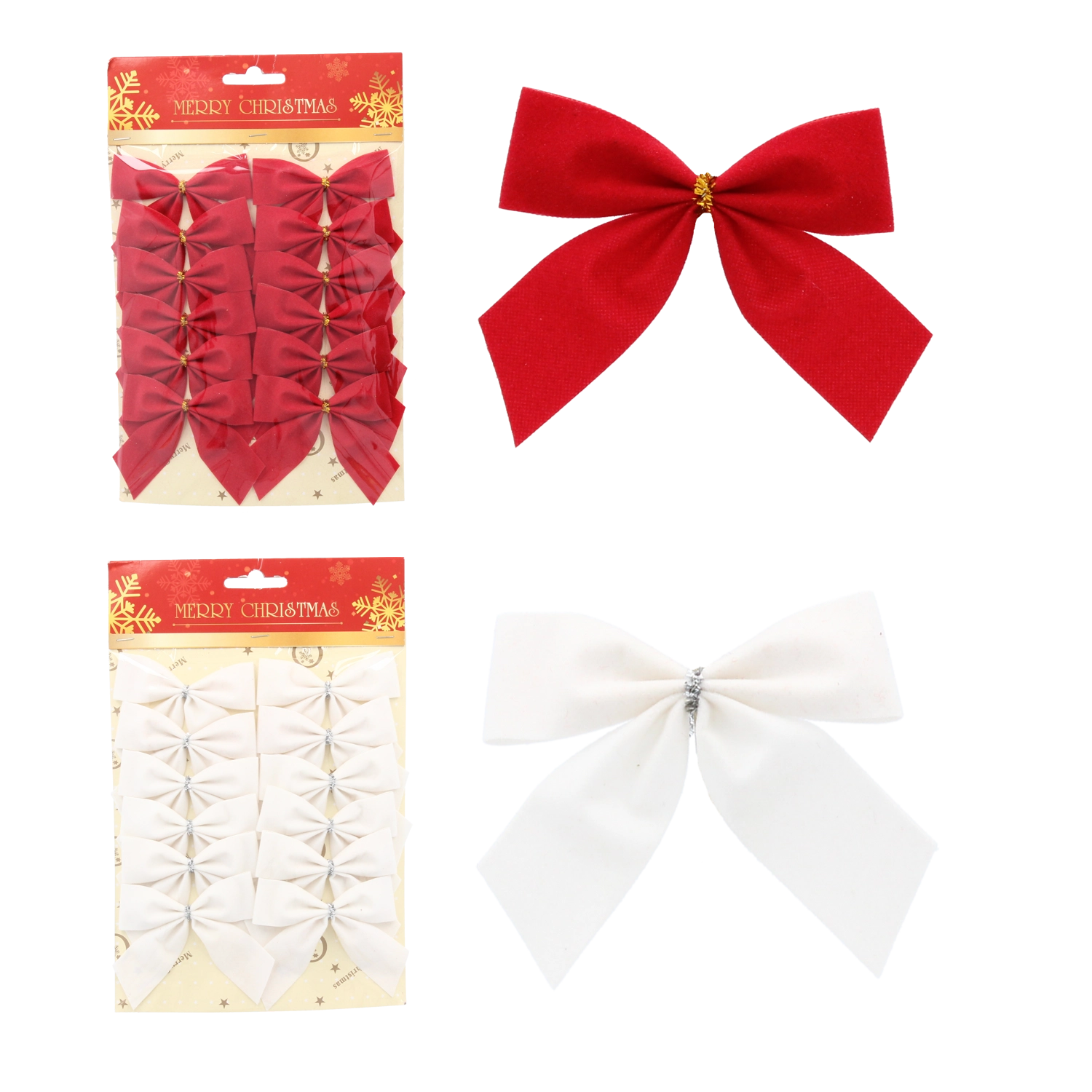 Oferă stil aranjamentelor tale de sărbătoare cu acest set universal de funde. Combinația de roșu și alb clasice se potrivește perfect cu diverse stiluri de decor, iar textura catifelată creează un aspect elegant și cald. Datorită dimensiunilor compacte de 8×6 cm, fundele sunt ideale pentru crenguțe mai mici, pachete cadou și decorațiuni de Advent.