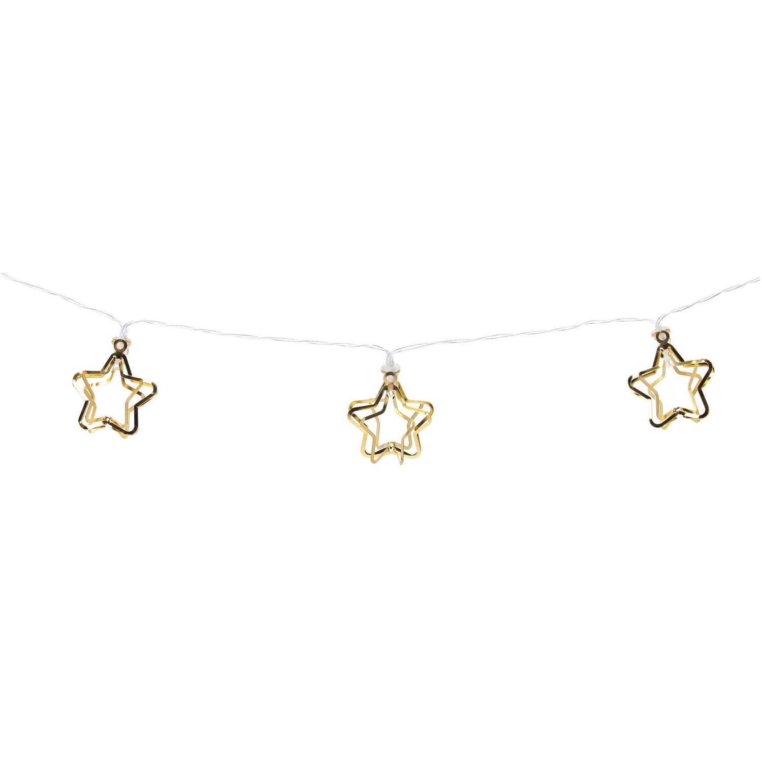 Șirul decorativ LED cu 10 diode calde în stele transparente cu efect auriu este ideal pentru decorul sărbătorilor și pentru înfrumusețarea interioarelor pe tot parcursul anului. Stelele metalice 3D au un aspect elegant și adaugă strălucire oricărei aranjări – de la glamour la boho.