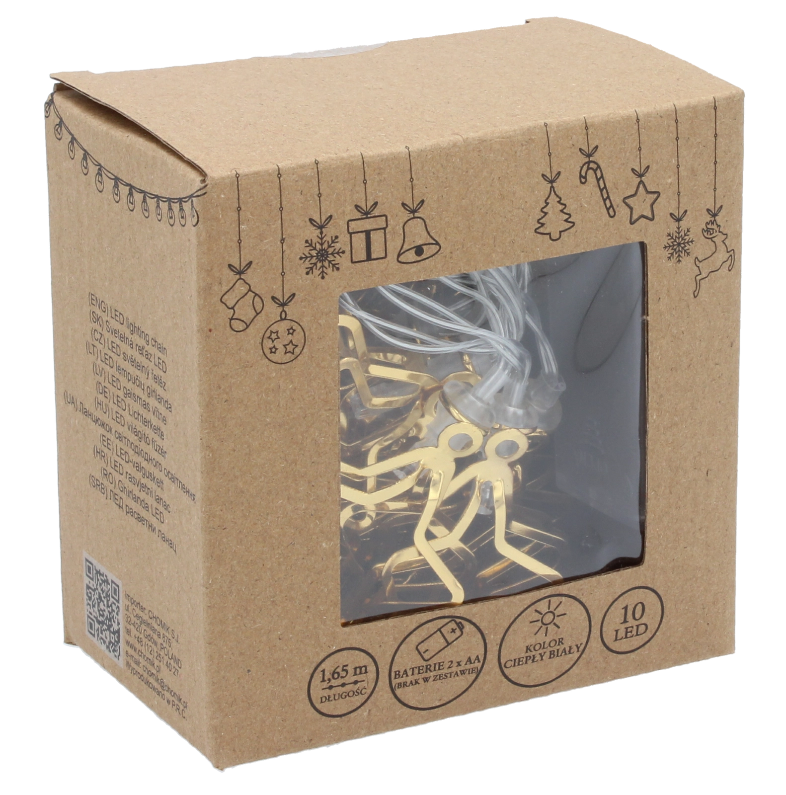 Zece LED-uri cu ton cald răspândesc o strălucire plăcută pe toată lungimea ghirlandei – ideală pentru pervaz, șemineu sau masă.