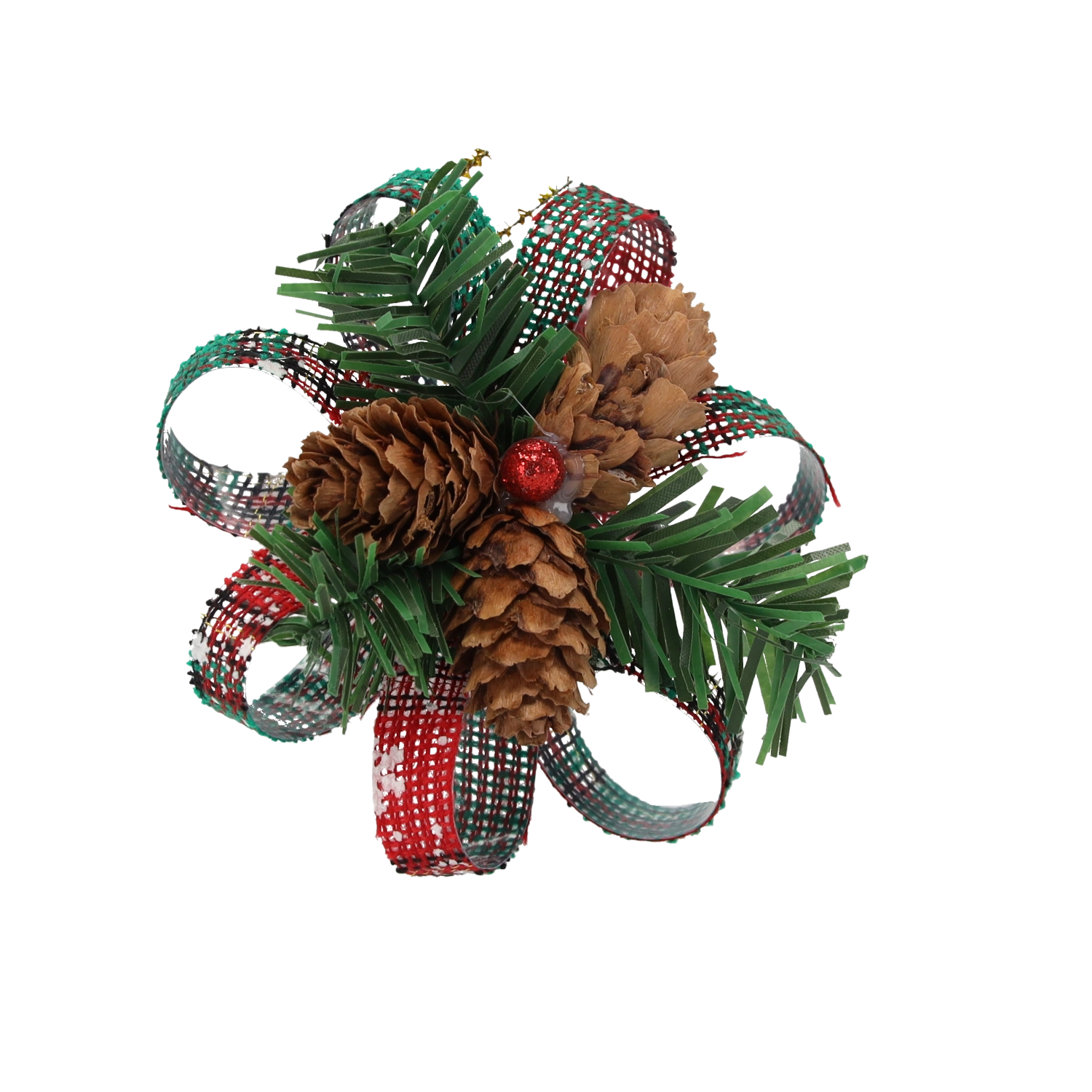 Cetină artificială realistă și conuri naturale oferă decorului un aspect autentic, rustic și susțin fără efort atmosfera de iarnă.