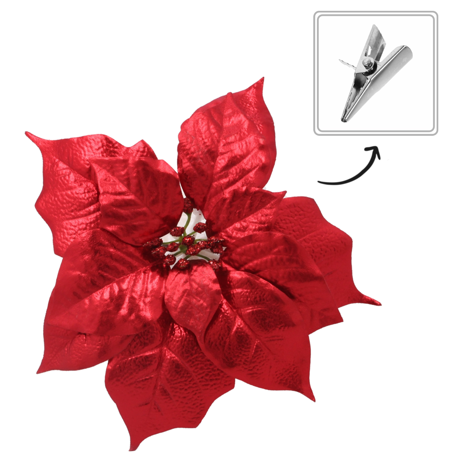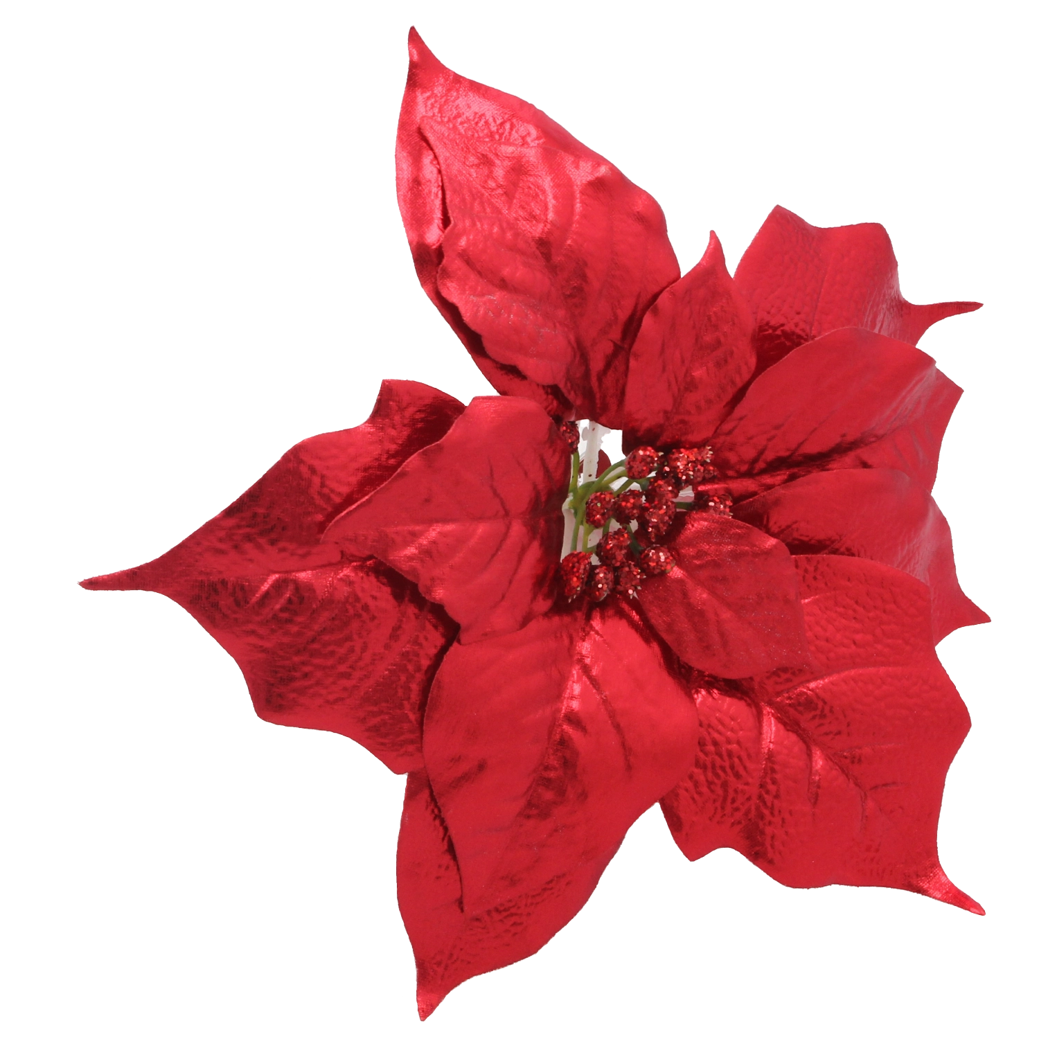 Petalele texturate, cu brocat fin, imită fidel poinsettia naturală și oferă aranjamentelor o strălucire festivă.