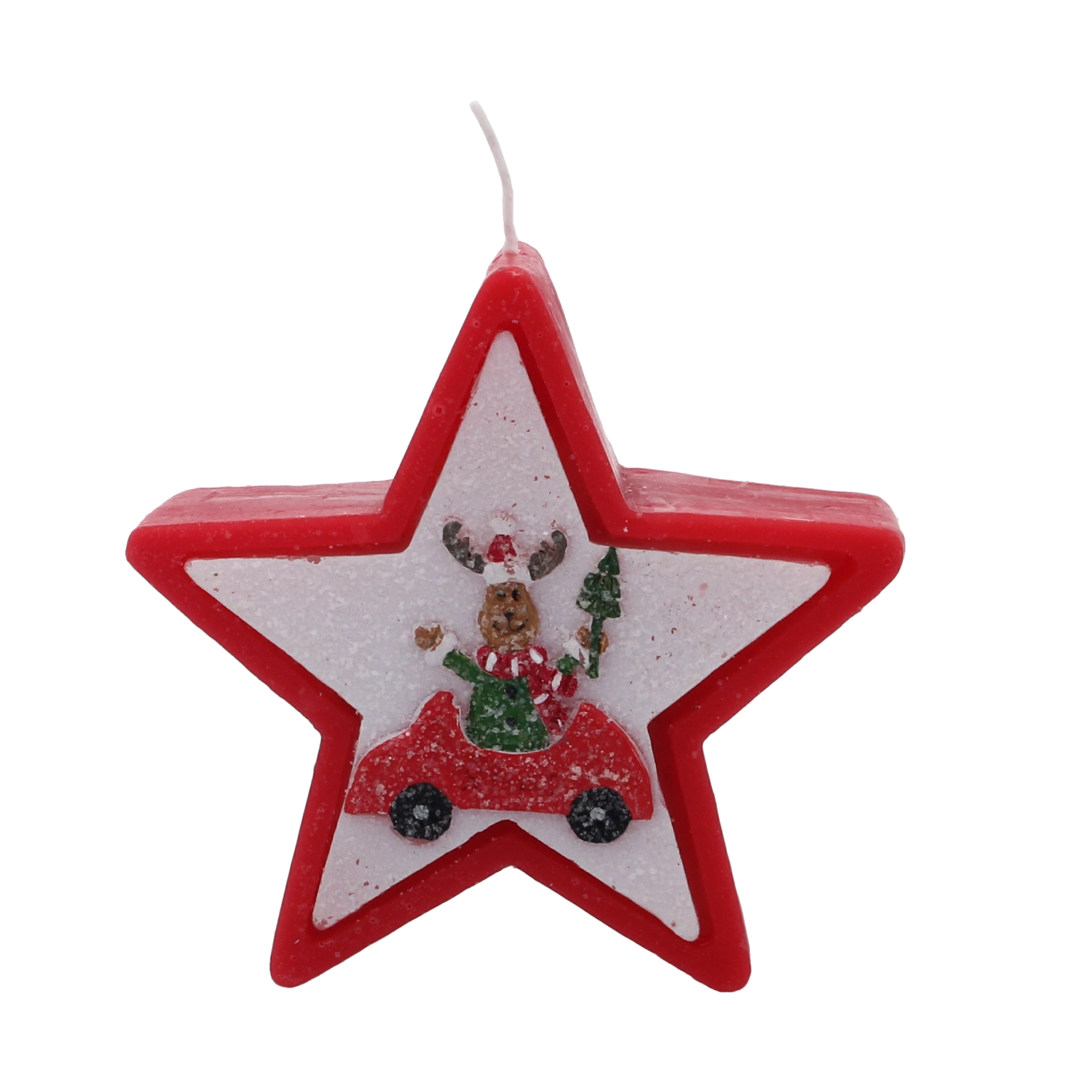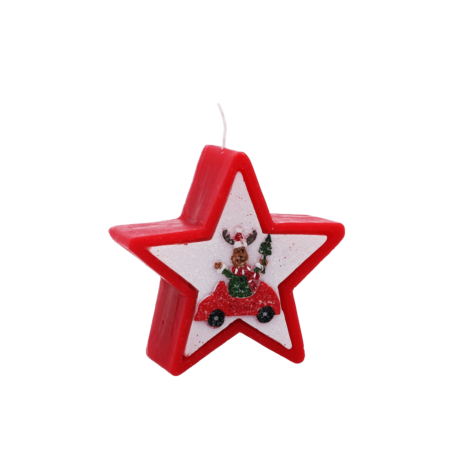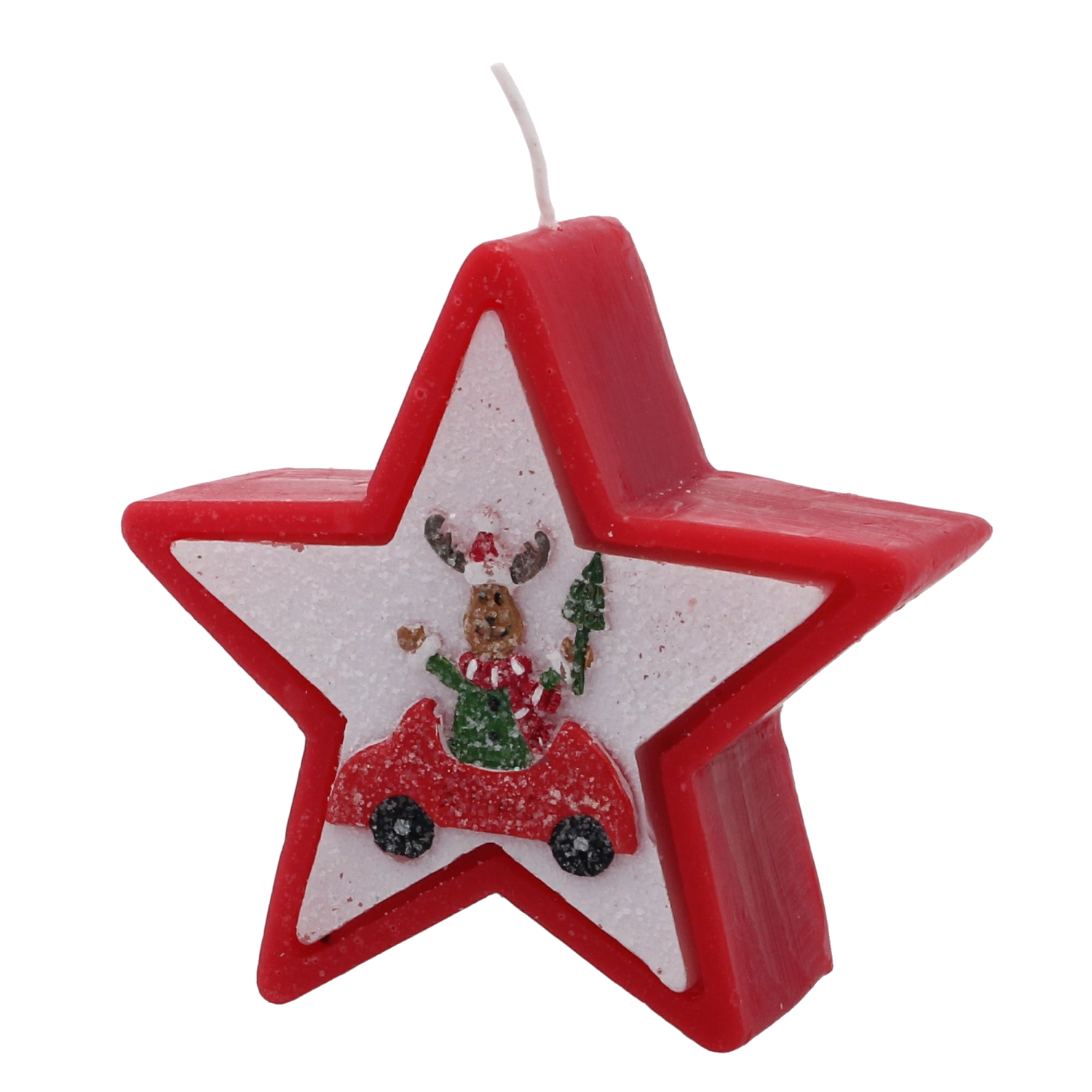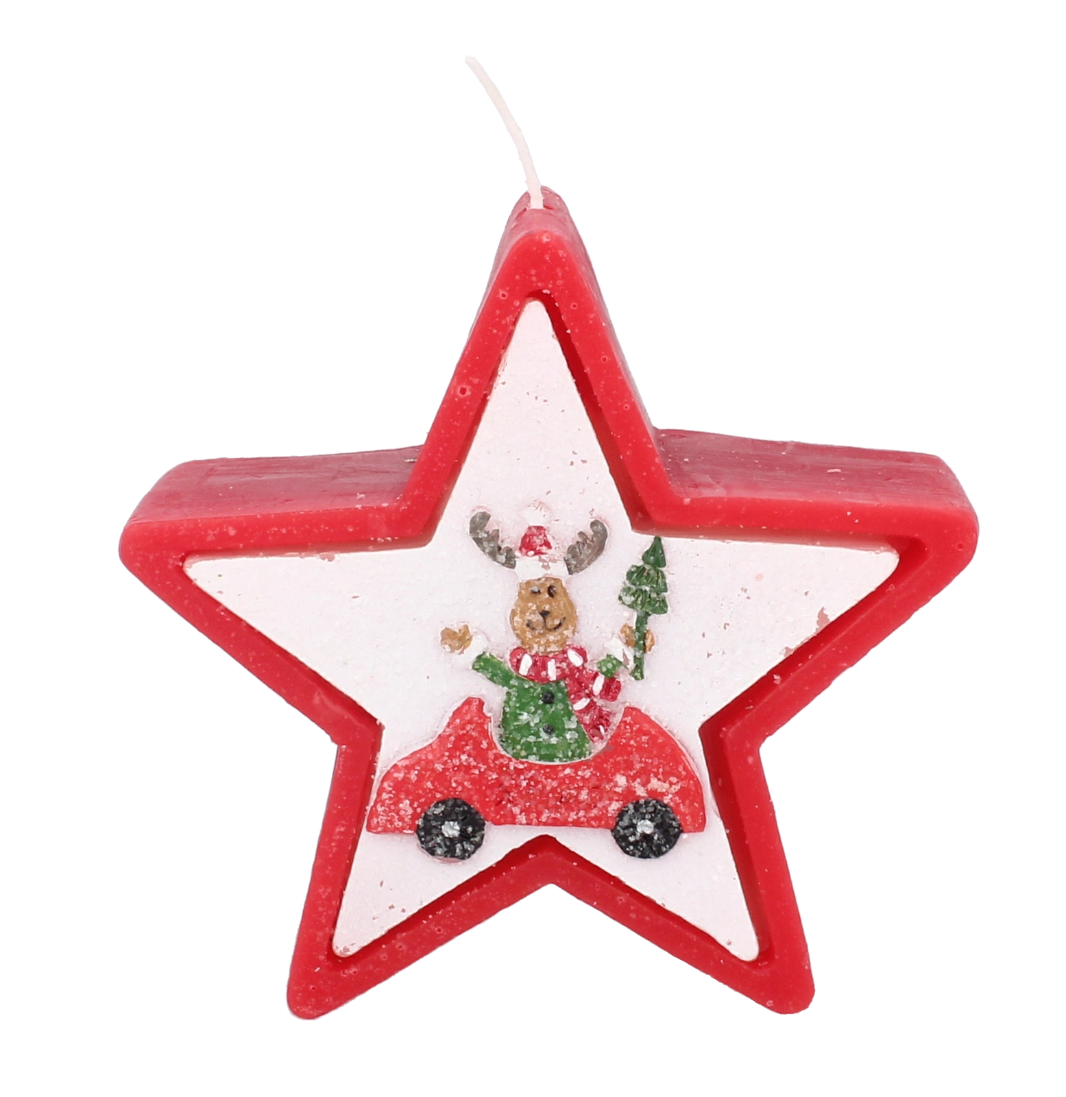 Această lumânare de Crăciun în forma elegantă de stea impresionează prin motivul vesel cu renul în mașină și creează instantaneu o atmosferă caldă de sărbătoare. Ceara de calitate asigură o ardere stabilă și uniformă, astfel încât să te bucuri de lumina ei mai mult timp.