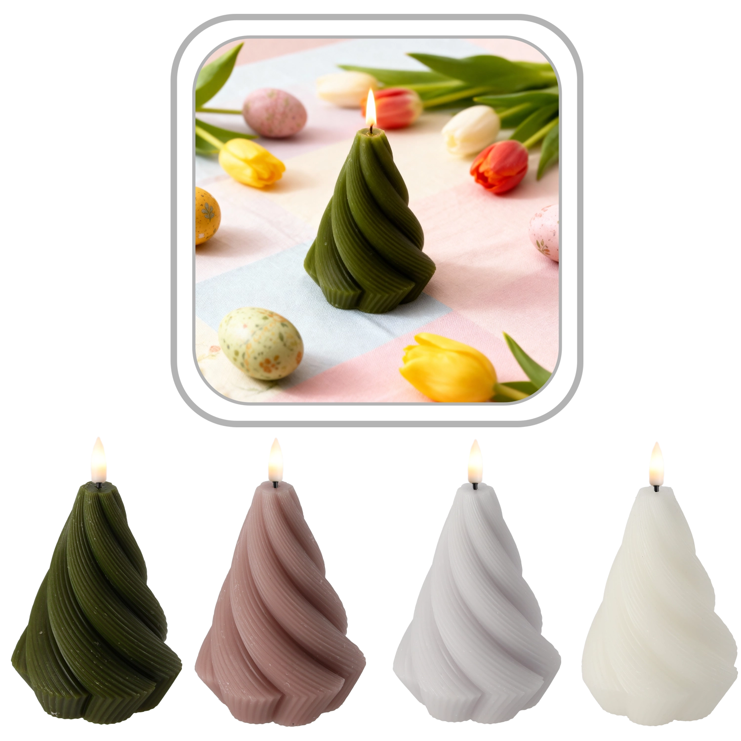 Creați acasă o atmosferă plăcută cu lumânarea LED din ceară naturală, care imită fidel flacăra clasică, fiind în același timp extrem de sigură. Forma spiralată accentuează aspectul modern și completează frumos atât interioarele minimaliste, cât și pe cele tradiționale.