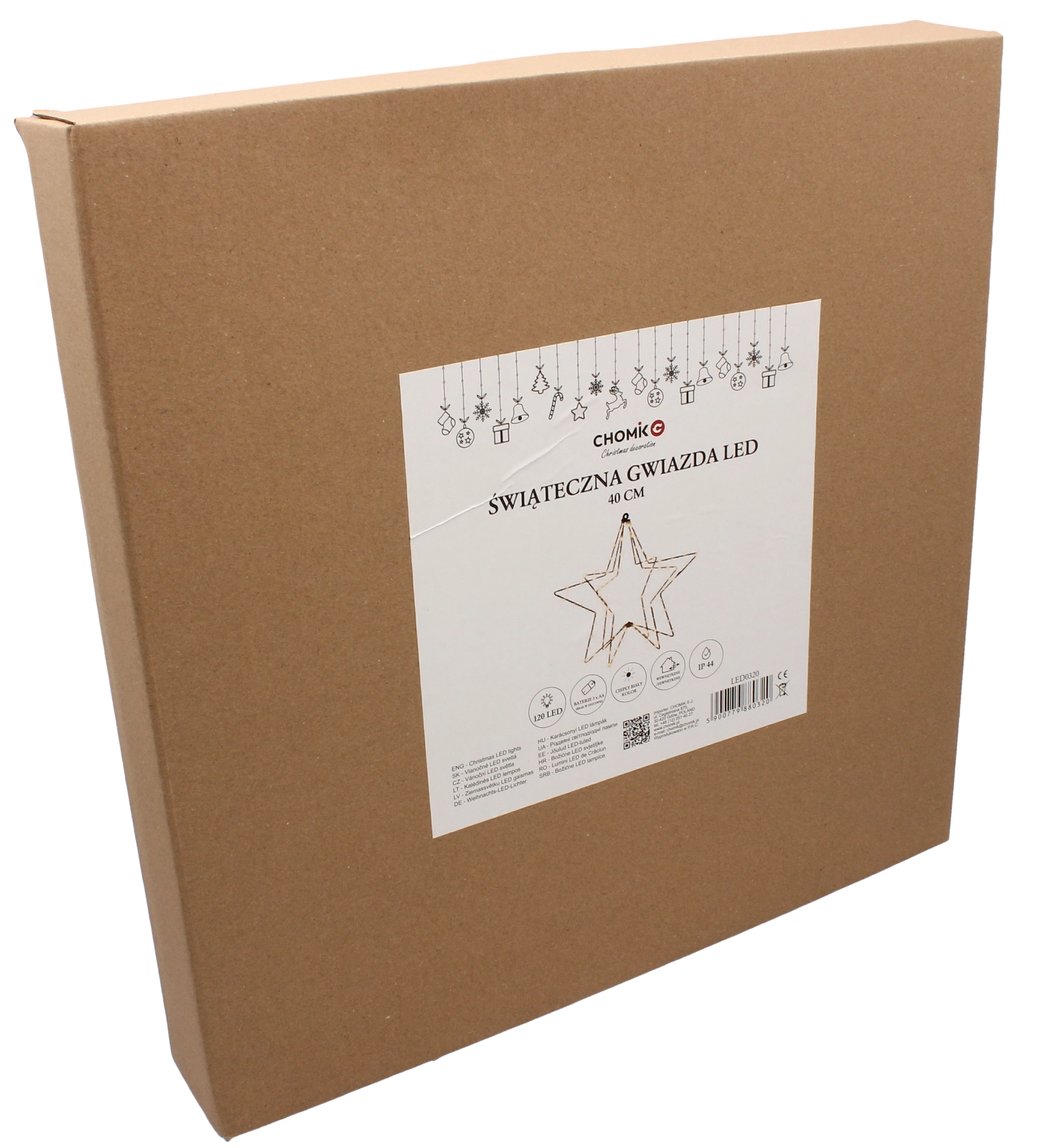 Umple-ți casa de atmosferă festivă cu o decorațiune în formă de stea, cu înălțimea de 40 cm și 120 LED-uri calde. Datorită alimentării pe baterii 3× AA, o poți amplasa oriunde, fără cabluri și priză. Gradul de protecție IP44 permite utilizarea în interior și în exterior acoperit.