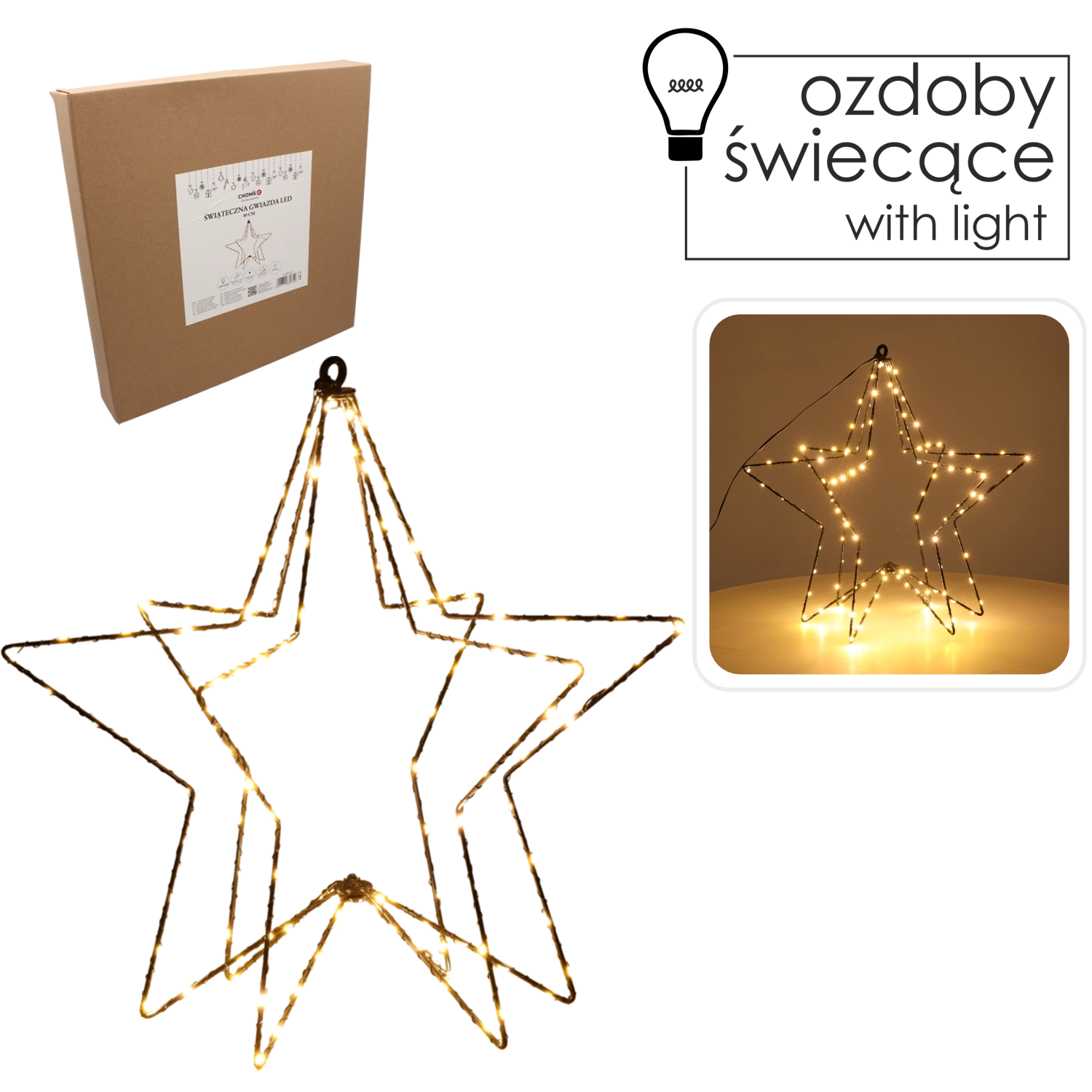 Ideală ca element principal al decorațiunii de Crăciun la fereastră, pe raft sau ca iluminare discretă a mesei festive.