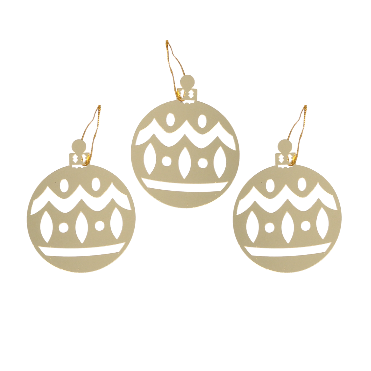 Elegantul set de trei biluțe aurii este o alegere ideală pentru decorațiuni de Crăciun atât tradiționale, cât și moderne. Aspectul metalic lucios și decupajele decorative conferă interiorului o notă festivă, în timp ce designul unitar ajută la crearea unei compoziții armonioase și echilibrate pe brad sau ghirlandă.
